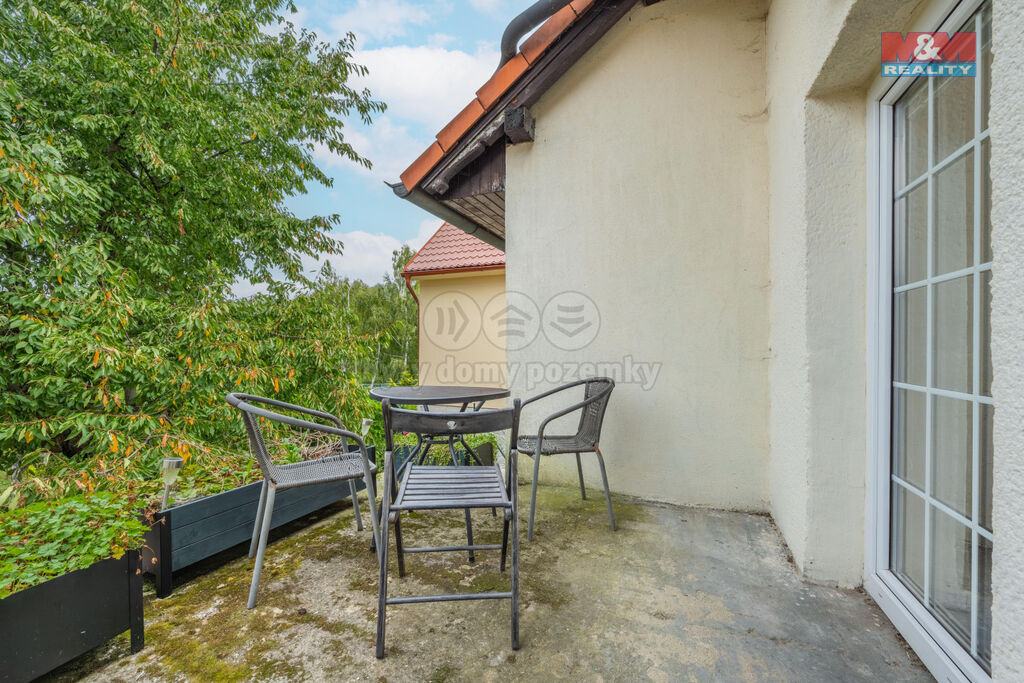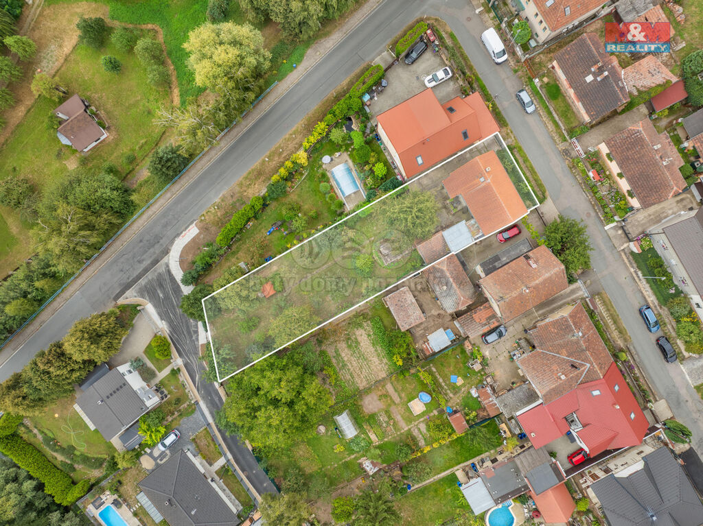 Hlavním lákadlem je pozemek o rozloze 797 m², který je mírně svažitý, přístupný z obou stran a osázený vzrostlými ovocnými stromy. K dispozici je vrtaná studna pro zalévání, pohodlné parkování pro dvě auta a dostatek prostoru pro zahradu, bazén, pergolu či další rodinné vyžití.