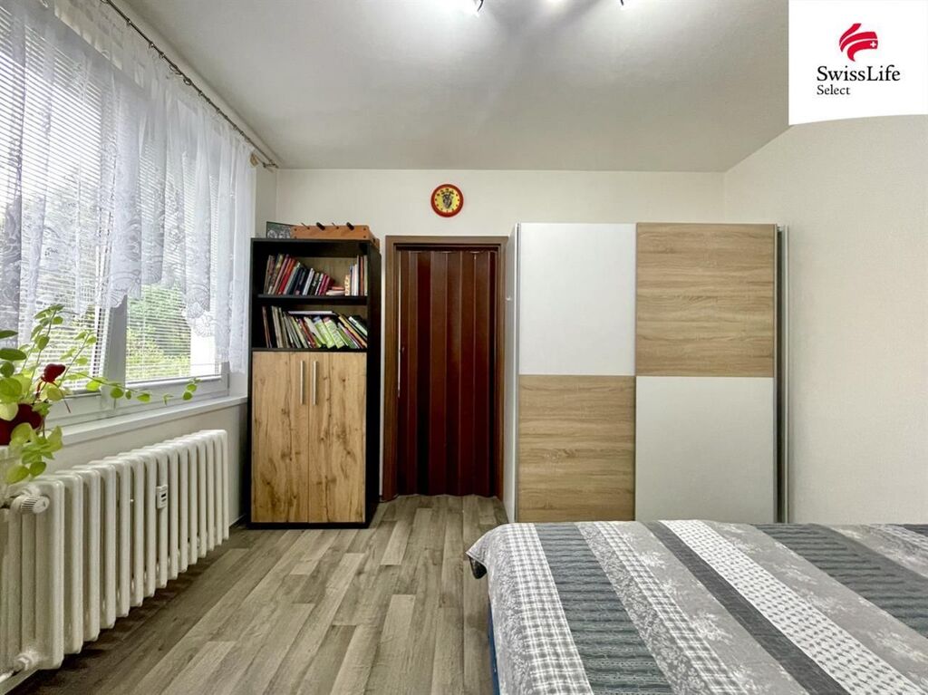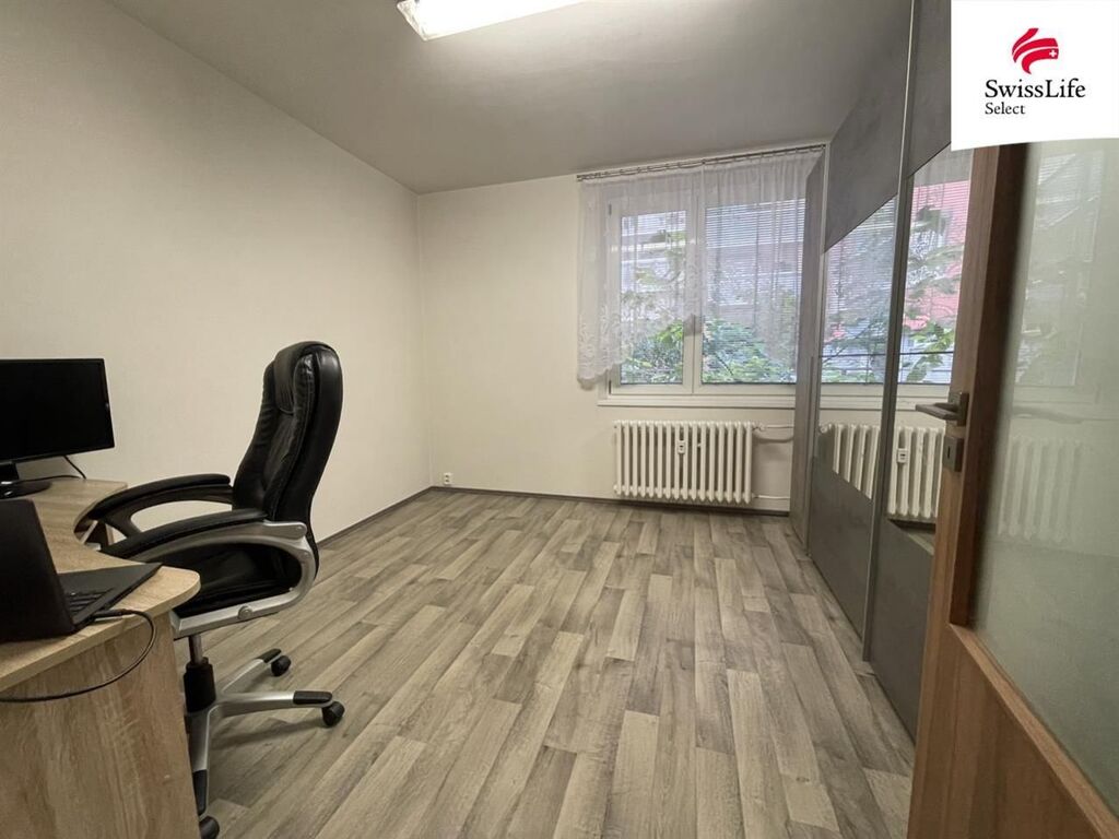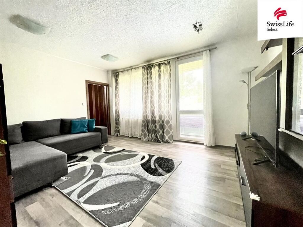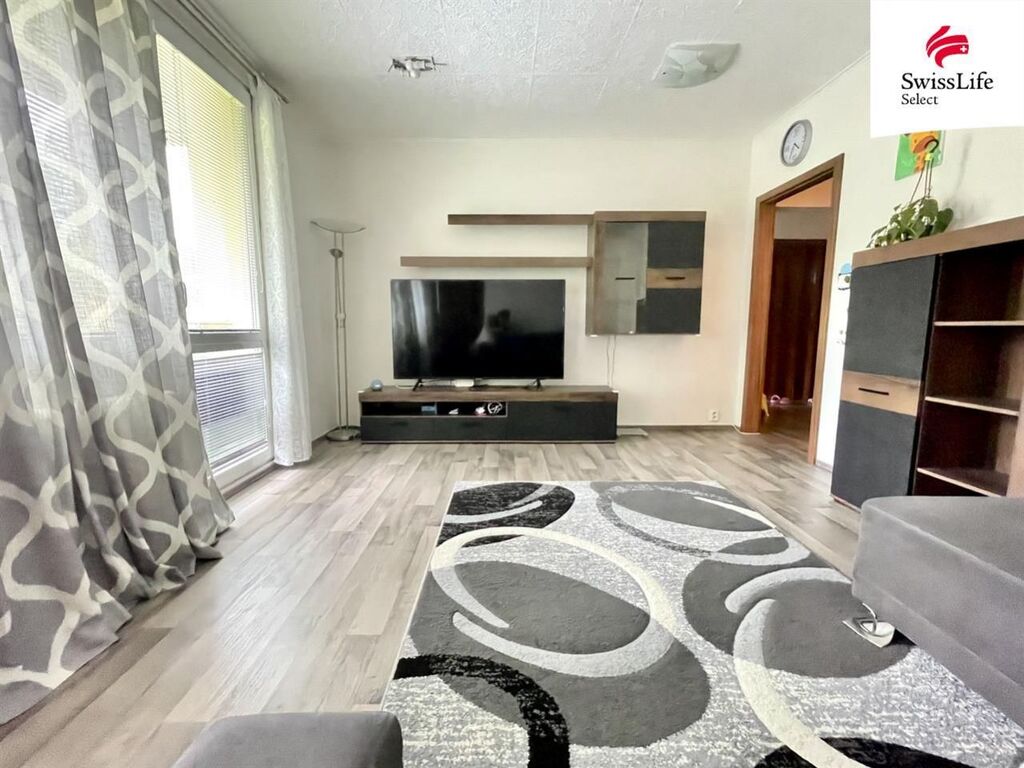 Byt je situován v 1. nadzemním podlaží panelového domu s výtahem. Dispozice zahrnuje dva neprůchozí pokoje (12 m a 9 m), obývací pokoj (17 m) se vstupem na východně orientovanou lodžii, samostatnou kuchyni, komoru, koupelnu a oddělenou toaletu.