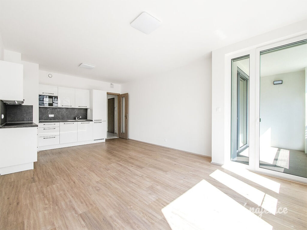 Byt je nabízen nevybavený, což vám dá možnost vytvořit si interiér podle vlastního vkusu. Kuchyně disponuje vestavnou lednicí, myčkou, troubou, varnou deskou, mikrovlnnou troubou a digestoří. Obývací část i ložnice jsou nevybavené, ale mají vstup na prostorný balkon, který vám nabízí krásný výhled. Ložnice je vybavena prostornou vestavnou šatní skříní pro uskladnění vašich věcí. V koupelně najdete vanu a toaletu. Dále byt nabízí i prostornou komoru, která vám poskytne dostatek místa pro uložení dalších věcí.