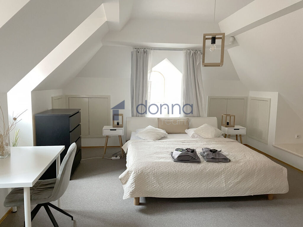 Byt je přístupný schodišťovou halou ze 3. patra domu s vestavěnou skříňovou sestavou v předsíni. Prostorný obývací pokoj je propojen s kuchyňským koutem plně vybaveným vestavnými spotřebiči - indukční varnou deskou, elektrickou troubou s teleskopickým výsuvem, lednicí, vestavěným mrazákem AEG, novým dřezem franke s nerezovou baterií a malou vinotékou. Dvě velké ložnice mají samostatný vstup z chodby, stejně jako koupelna se sprchovým koutem, pračkou, sušičkou a WC, další WC je zvlášť. Byt disponuje velkým množstvím úložných prostor ve formě vestavných skříní využívajících podkrovní prostor v každém pokoji. Ústřední vytápění a ohřev TUV. Dům se nachází v tiché ulici v samém srdci historického centra Prahy. Dle individuální domluvy lze ponechat byt vybavený. Volný od 1. 12. 2025.