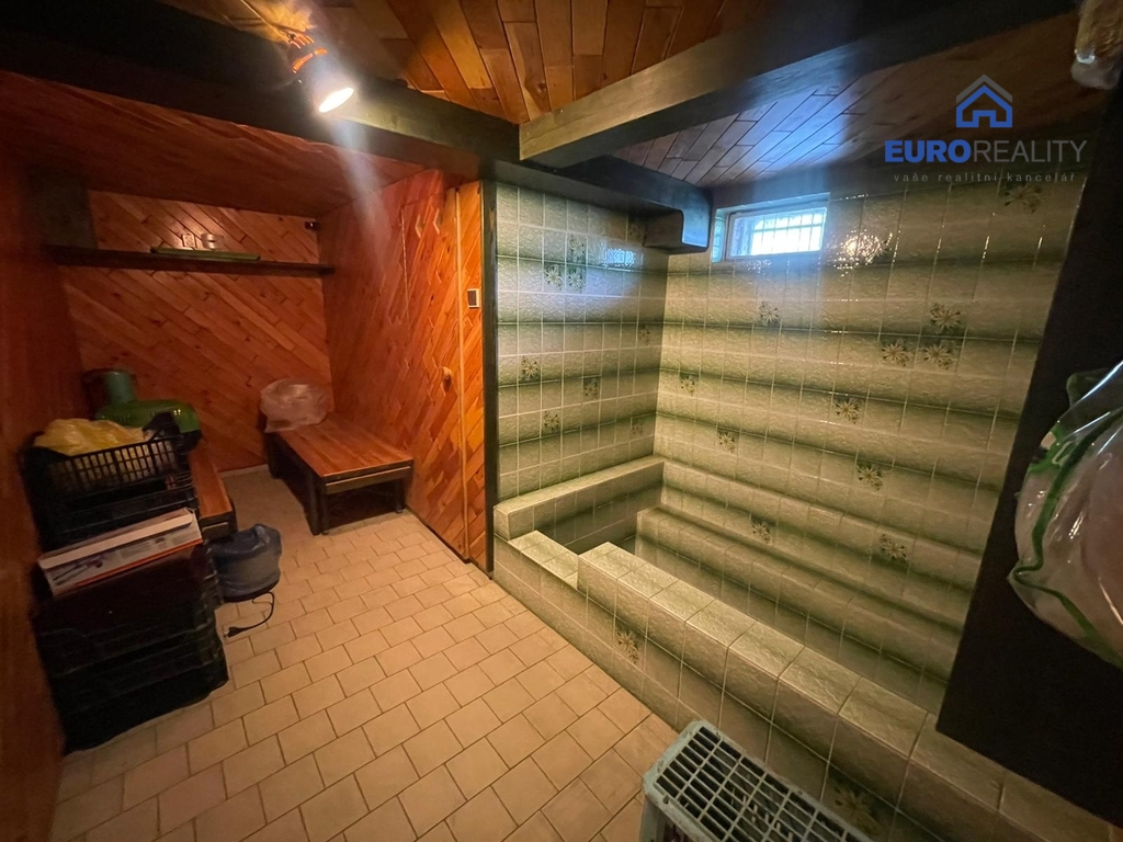 Nemovitost je plně podsklepená, což nabízí další prostor pro využití. Ve sklepě se nachází dílna, sauna a bazén, ideální pro odpočinek a relaxaci. Dále je k dispozici garáž vybavená vestavěným zdvihovým navijákem. Pro vychutnání příjemných chvil venku je k dispozici zasklená teráska a balkon. Na pozemku dále najdete zděný zahradní domek a skleník.
