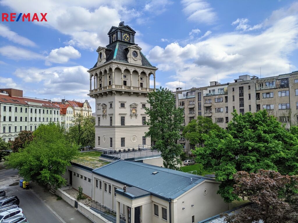 Z bytu je nádherný výhled na Letenskou vodárenskou věž, technickou památku a jednu z výrazných dominant Letné.