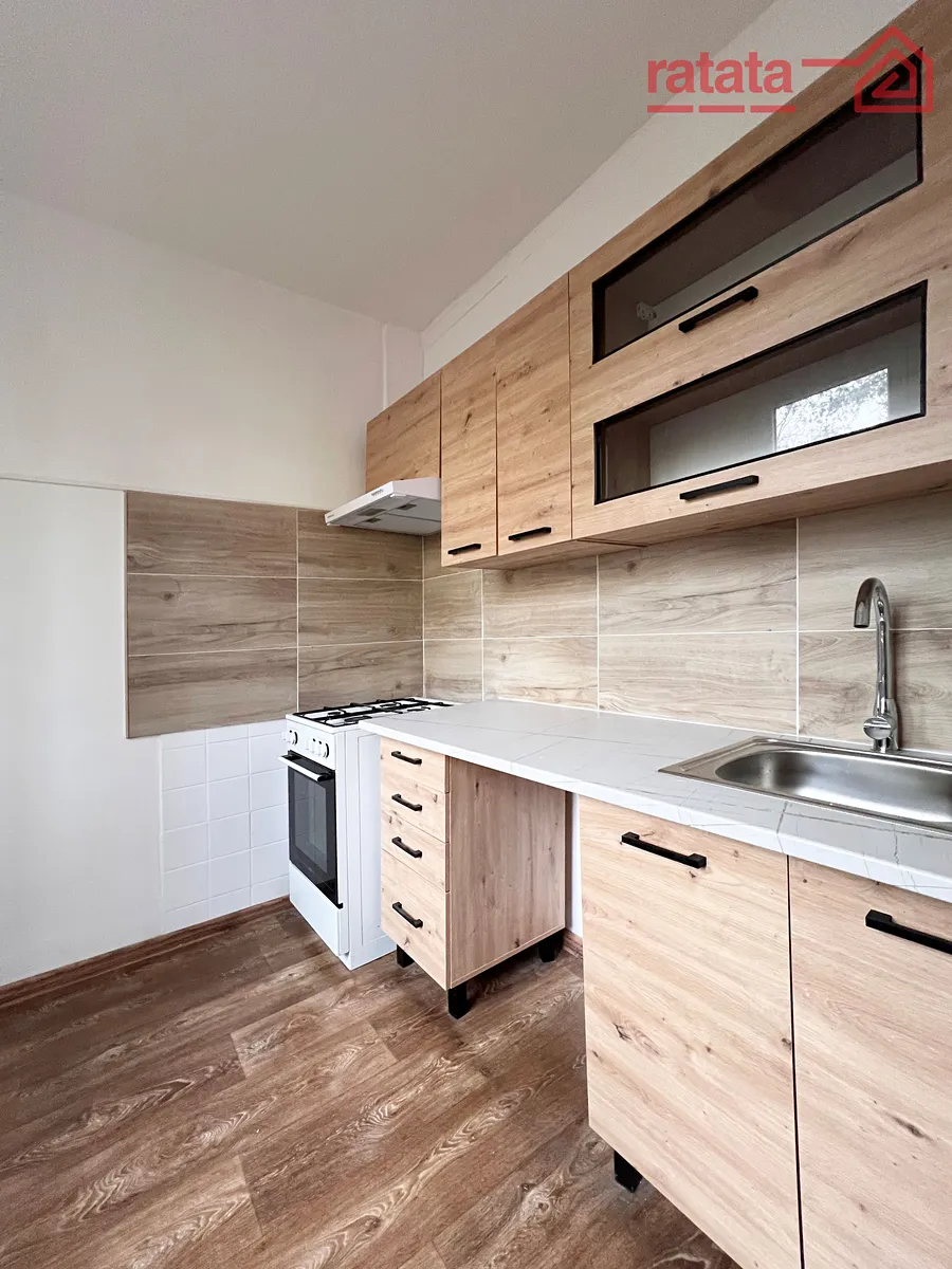 Je zde kuchyňská linka, plynový sporák, sprchový kout, umyvadlo a WC. Na podlahách je položeno lino. Byt je volný k nastěhování Ihned.