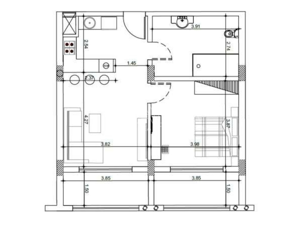 Nabízený byt má započtenou plochu 87 m2 (včetně podílu na společných prostorách, přibl. 20 % ze započtené plochy). Byt má dispozici typu 2+kk (obývací pokoj s kuchyňským koutem, ložnice, koupelna s WC) s lodžií v obývacím pokoji a v ložnici. Byt se nachází na 3. patře čtyřpatrové budovy, výhled je na klidný bulvár Mamsha a moře vzdálené přibl. 200 m vzdušnou čarou. Orientace bytu je východní.