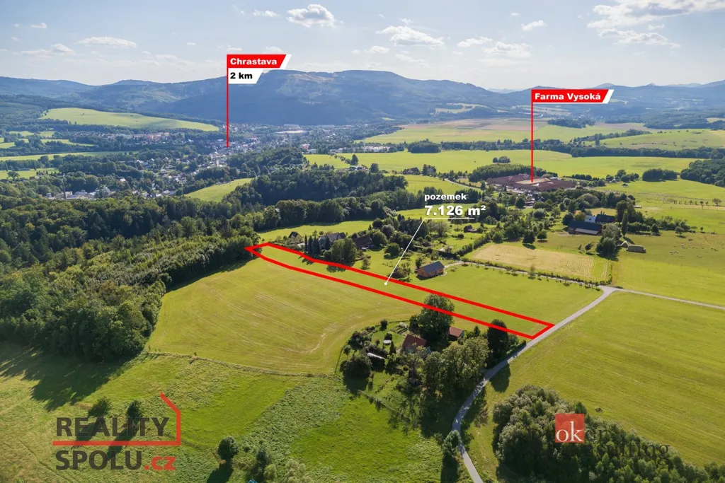 Pozemky se nacházejí v klidné části obce, v blízkosti farmy Vysoká, s krásným výhledem do okolní přírody a dobrou dostupností do centra Chrastavy i Liberce.