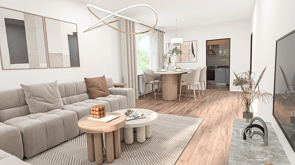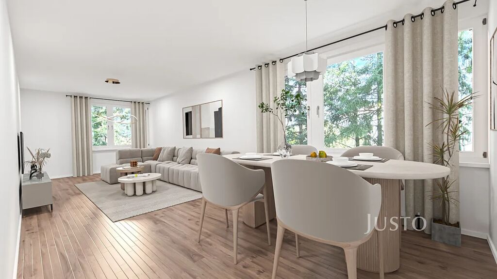 Dispozice bytu je řešena účelně a zároveň nabízí možnost jednoduchého propojení kuchyně s obývacím pokojem bez zásadních stavebních zásahů.