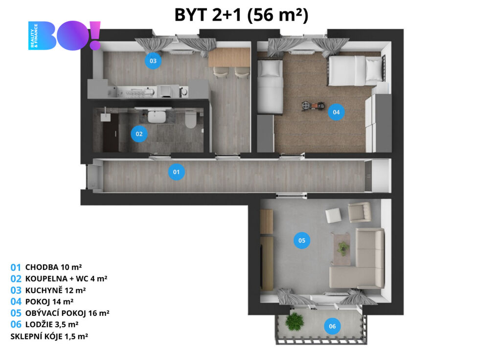 Tento byt je ideální volbou pro každého, kdo touží po pohodlí, klidu a příjemné atmosféře. Nachází se ve druhém patře pečlivě udržovaného panelového domu s výtahem, odkud se vám otevře krásný výhled na město. Celková užitná plocha činí 56 m² a k bytu náleží i prostorná lodžie (3 m²), která je ideální místo pro ranní kávu nebo večerní relaxaci a sklepní kóje (1,5 m²) pro úschovu vašich věcí.