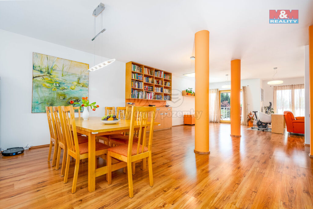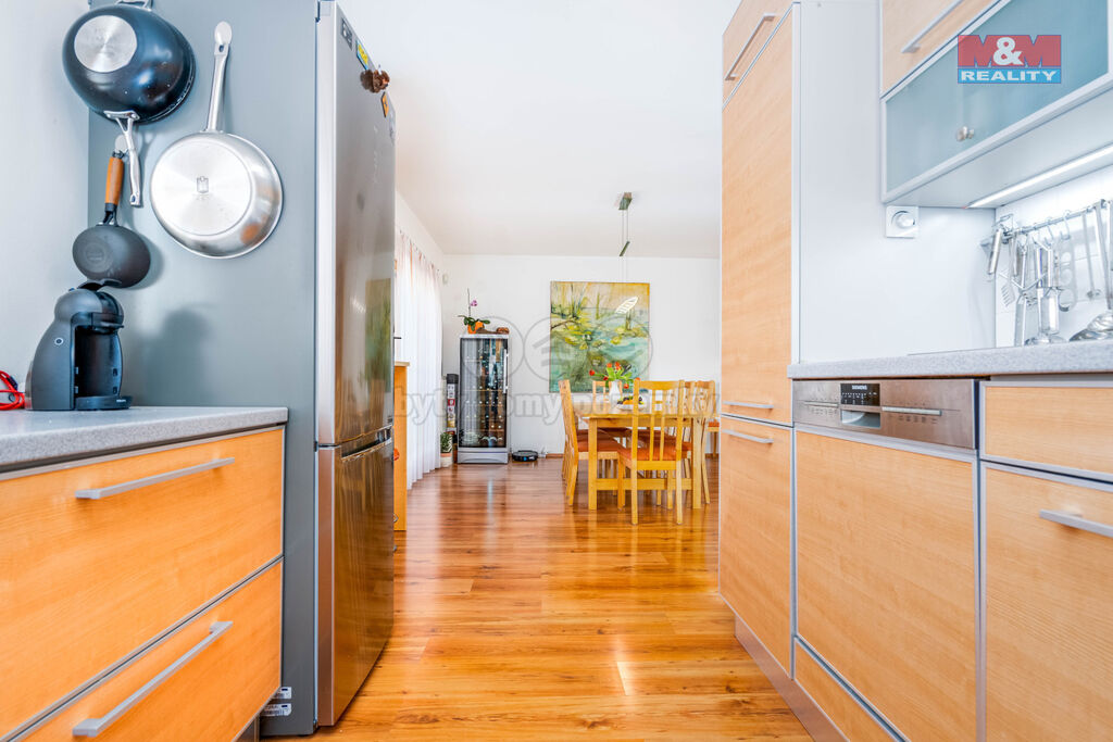 Nabízíme ke koupi prostorný, řadový rodinný dům o dispozici 5+kk se samostatnou jednotkou 2+kk s terasou v přízemí, nacházející se v klidné ulici Klausova, na Praze 5 – Stodůlkách. Dům má čtyři nadzemní a jedno podzemní podlaží vč. přízemí. Samostatný byt 2+kk je aktuálně pronajatý, což představuje stabilní příjem. Tento prostor lze také využít jako sídlo firmy či pro vícegenerační bydlení. V přízemí je k dispozici také garáž pro jedno auto. Dále je možnost parkování dalších dvou aut na pozemku před domem. Hlavní obytná část 5+kk nabízí komfortní bydlení se třemi terasami a šatnou.