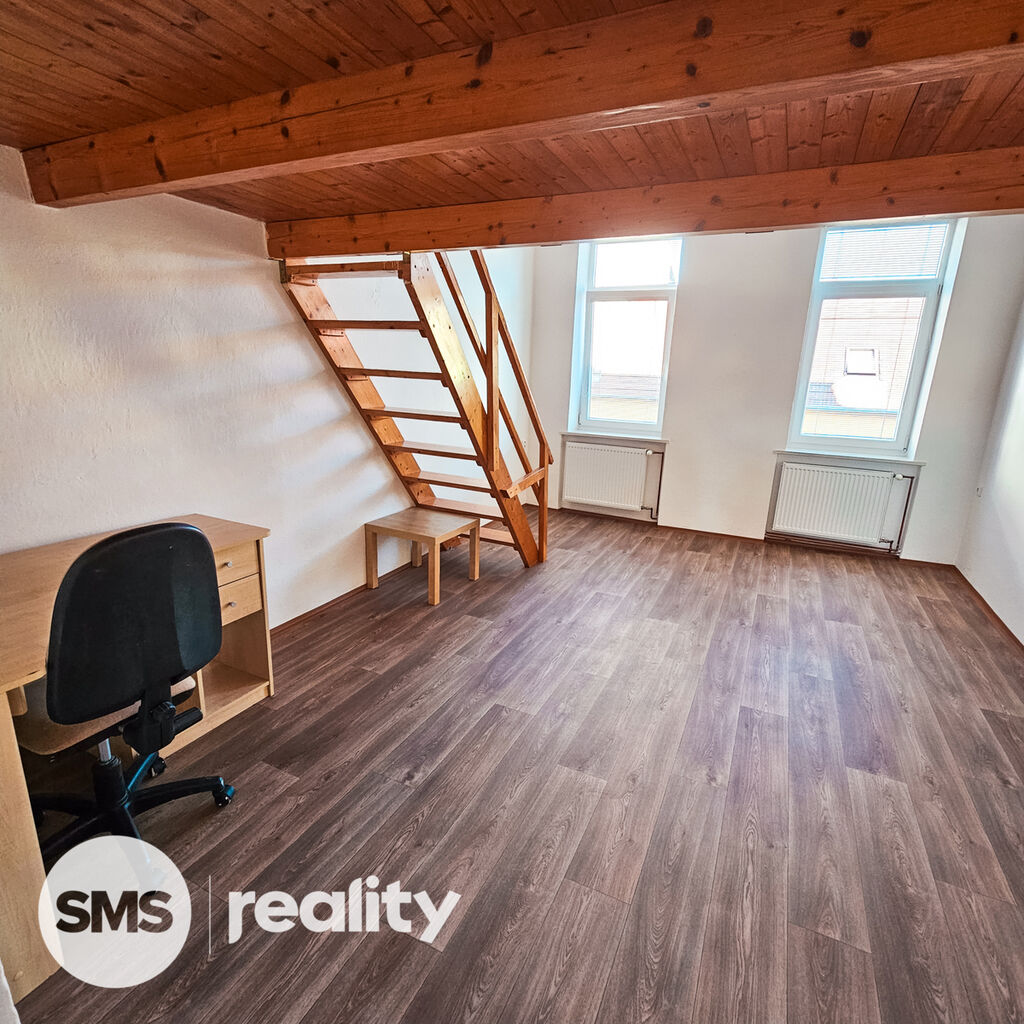 Z kuchyně se vstupuje do dalšího pokoje s galerií, kterou lze využít jako spací nebo odpočinkovou zónu. Oba pokoje jsou velmi dobře prosvětlené a nabízejí příjemné prostředí pro relaxaci i práci.