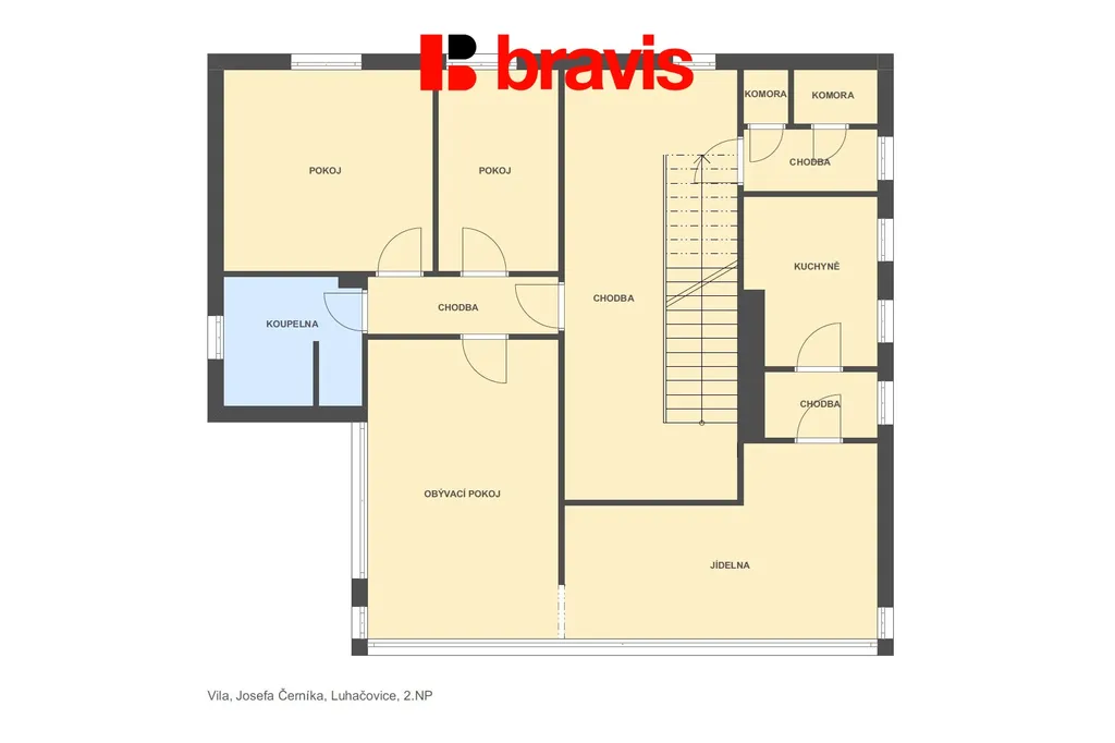 • V současnosti je vila o podlahové ploše 381 m2 rozdělena na tři byty o dispozici 2+KK, 4+1, 3+1.