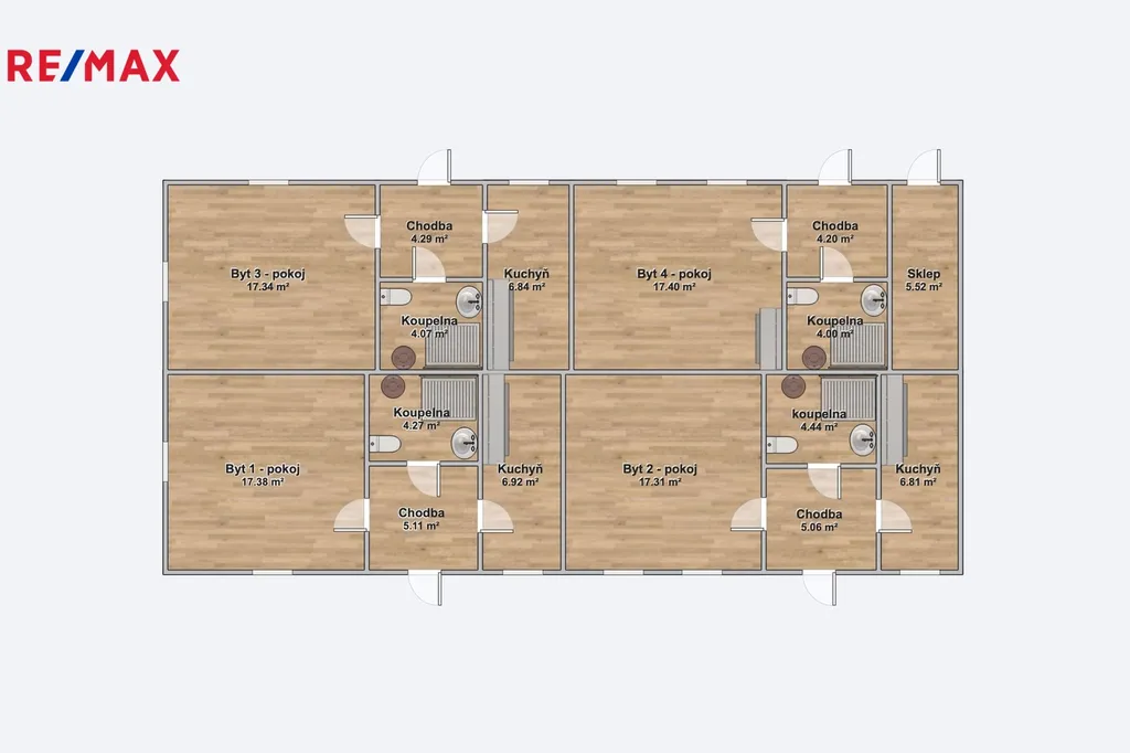 4 samostatné bytové jednotky 1+1