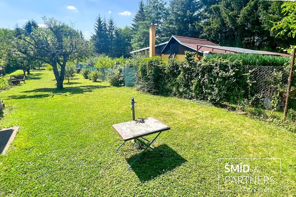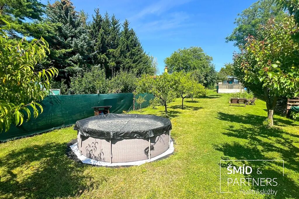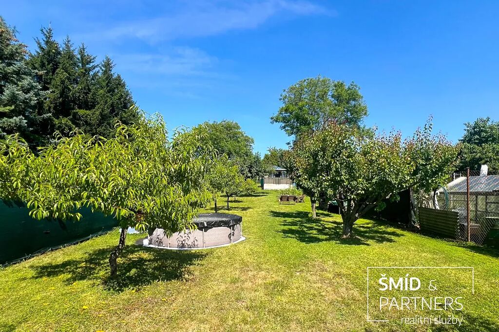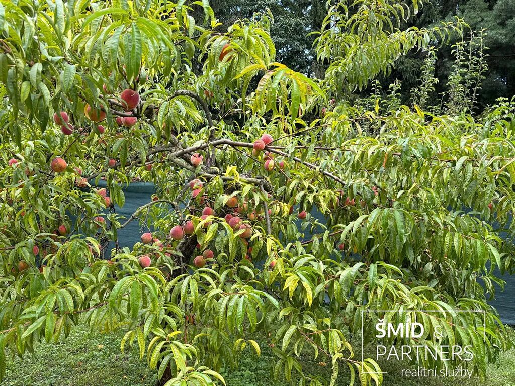 Pozemek je obklopen vzrostlými ovocnými stromy a keři, poskytujícími příjemné stínění a čerstvé plody. Pro děti je připraveno pískoviště a základ pro nadzemní bazén.