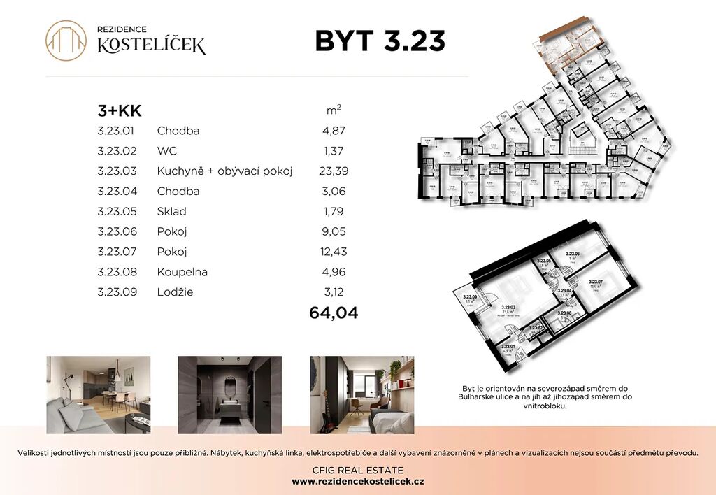 Nabízíme k prodeji byt 3+kk o celkové výměře 64,04 m² z toho lodžie o velikosti 3,12 m².