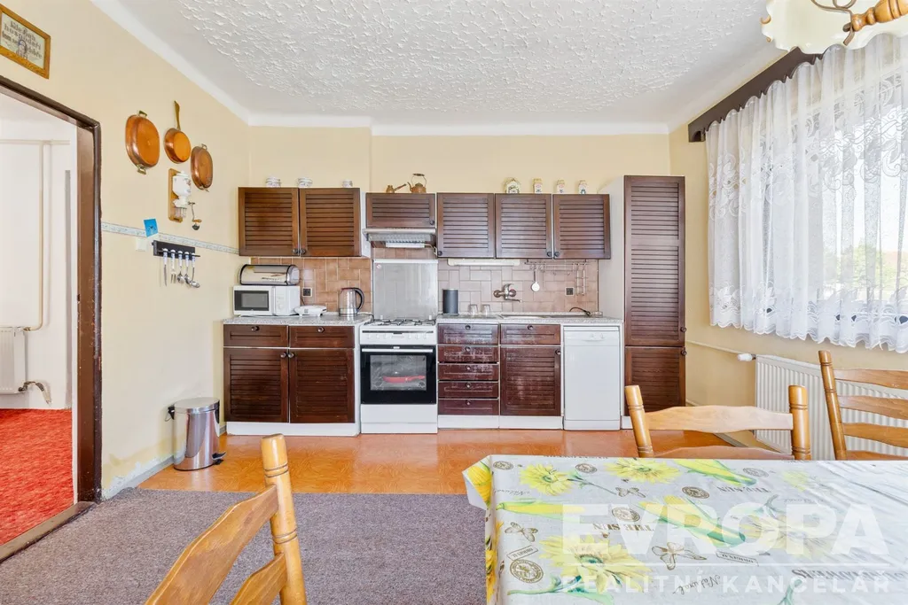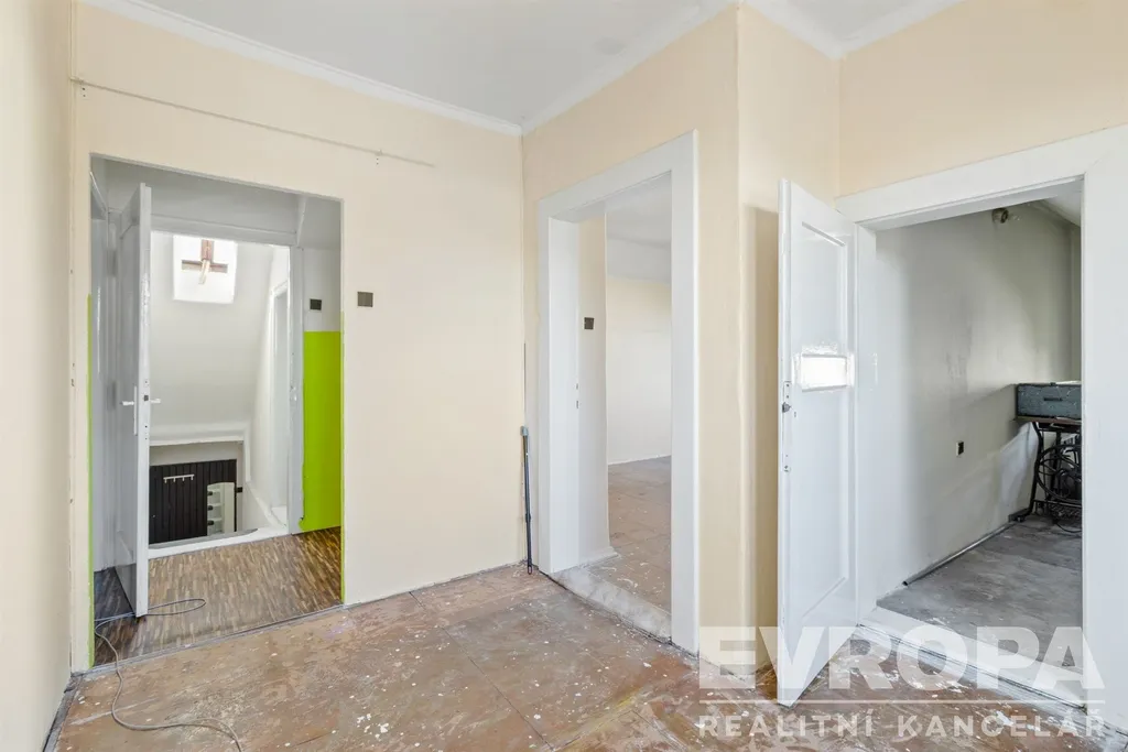 Nabízíme k prodeji velmi zajímavou nemovitost ať už z pohledu jejího situování v srdci Běchovic, tak možnosti získat lukrativní stavební pozemek na exponovaném místě. Jedná se o starší rodinný dům 6+1 s dostatečně velkou zahradou. Celková plocha pozemku je 584 m2, z toho 133 m2 zastavěno stavbou domu. Zahrada je rovinná, s vjezdem a vchodem z ulice Českobrodská. Rodinný dům je z inž. sítí v současné době napojen na vodovod, plyn a elektřinu. Odpadní vody byly svedeny do vlastní jímky. Je zde ale samozřejmě i možnost napojení na veřejnou kanalizaci. Podlahová plocha domu je 156 m2 + 2x prostory půdy s oknem 8 a 10 m2 + menší sklepní prostor 4 m2 + venkovní sklad 8 m2. Dům je v původním stavu určený ke kompletní rekonstrukci, aktuálně je bez úprav prakticky neuživatelný. Rekonstrukcí prošla v minulosti střešní krytina (i ta je ale zapotřebí opravit), měněn byl plynový kotel s radiátory. Místo je velmi vhodné i pro komerční využití domu pro sídlo firmy, nové cukrárny nebo kavárny, drobného provozu apod. Vybízí se varianta kompletního přebudování domu od základů a získat tak pro svůj projekt místo v historické zástavbě této malebné Pražské čtvrti a příležitost přestavby na více jednotek. V přímém okolí domu je široká občanská vybavenost, jako například Základní škola (která je prakticky za rohem), mateřská škola, pošta, obchody, sportoviště a další. Vedle domu je autobusová zastávka MHD se 7 různými spoji, včetně nočního autobusu. V pěší dostupné vzdálenosti je pak i vlaková stanice (18 min do centra Prahy na Hlavní nádraží). Po dokončení již rozestavěného silničního okruhu v místě kolem Prahy ubyde značná část provozu aut před domem.