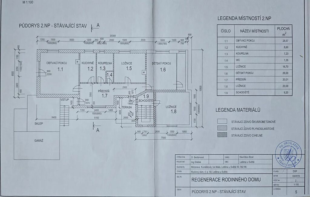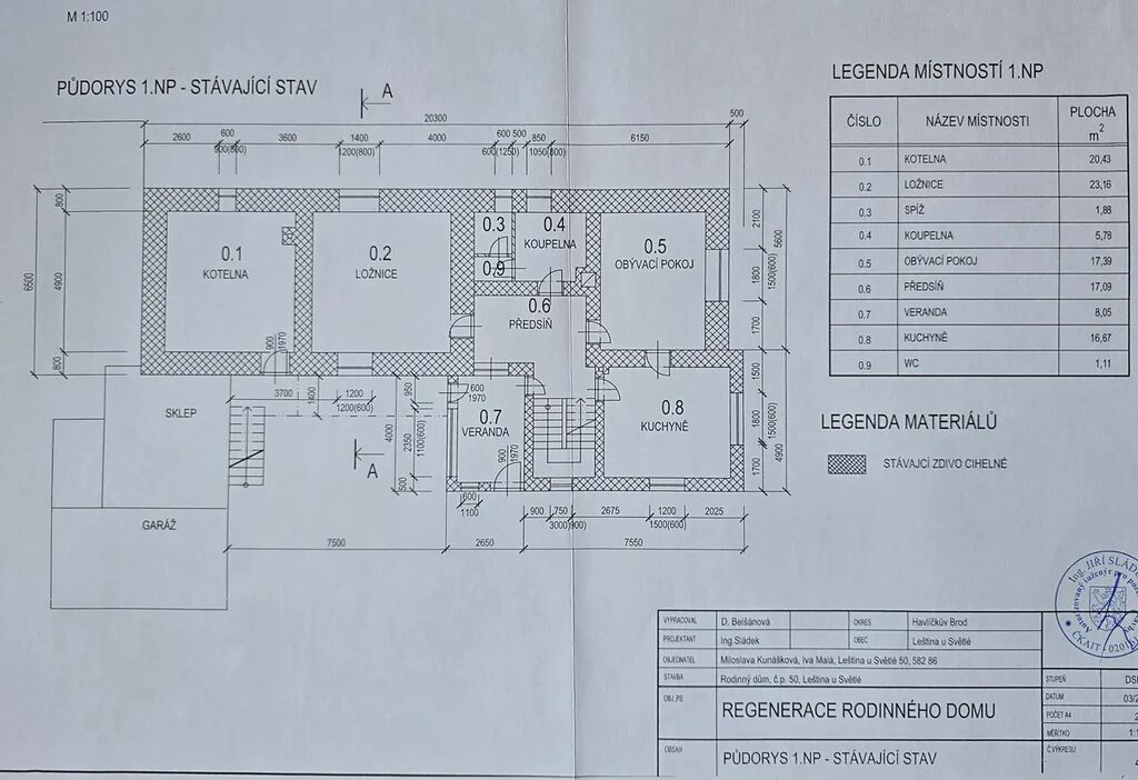 Celková výměra pozemku je 526 m². Součástí je také garáž pro dvě auta s dílnou.