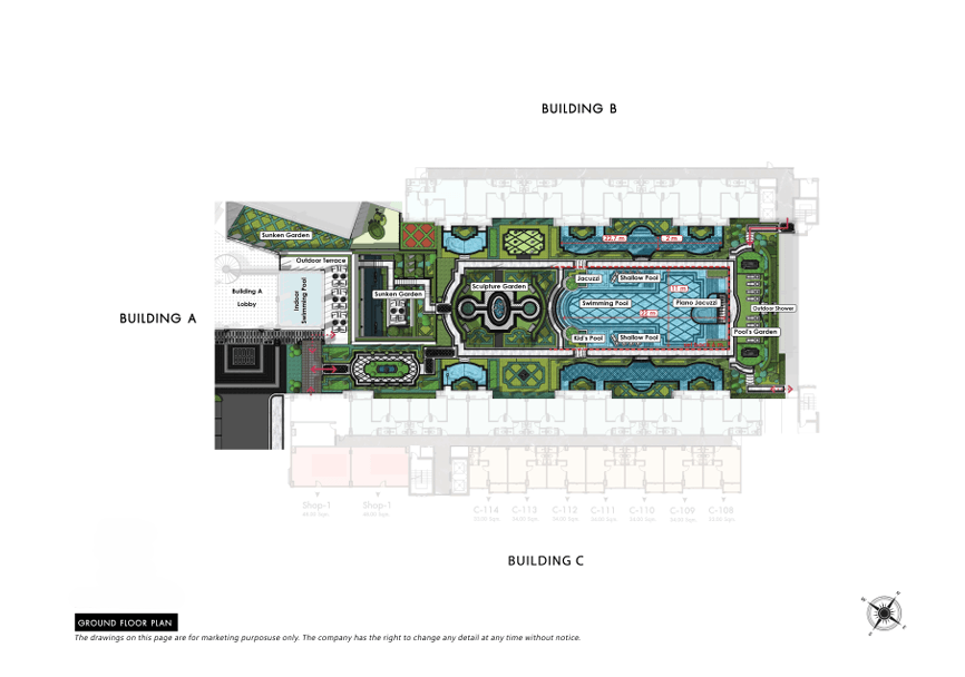 Projekt: tři osmipodlažní budovy na pozemku o rozloze 5 rai (~8 000 m). Celkem 474 bytů: studia, byty s 1-2 ložnicemi, prostorné rezidence s 3 ložnicemi.