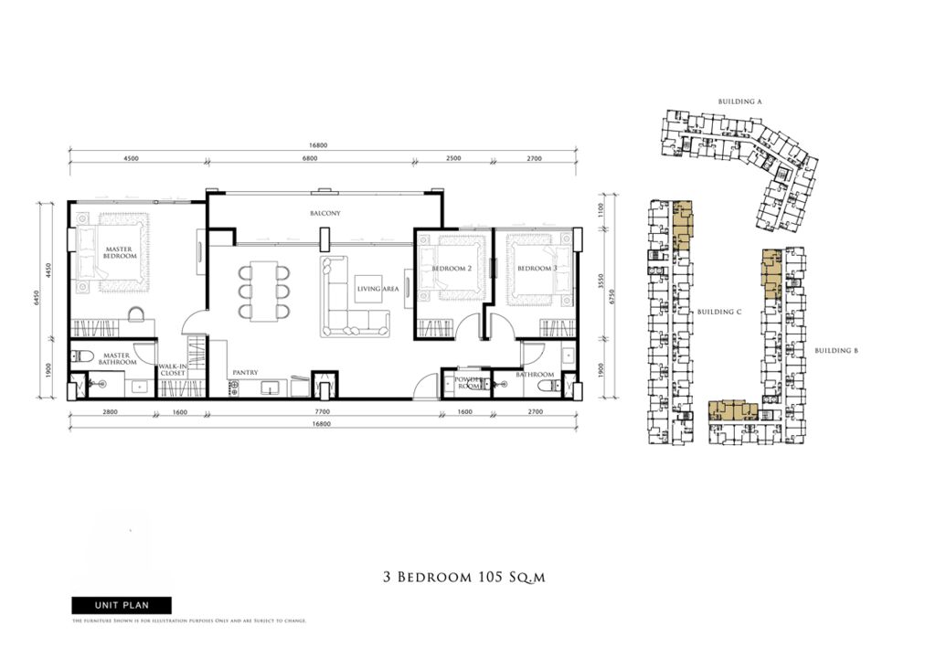 3 ložnice: 102105 m od 7,3 milionu THB (přibližně 198 000 USD / 183 000 EUR)