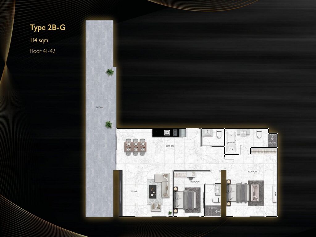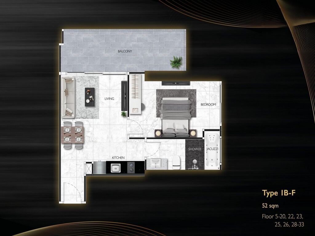 1 ložnice od 43 m od 6,05 milionu THB ( 163 000 USD / 148 000 EUR)
