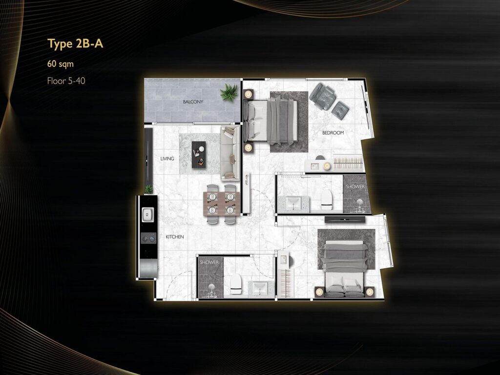 2 ložnice od 60 m od 9,5 milionu THB ( 256 000 USD / 232 000 EUR)