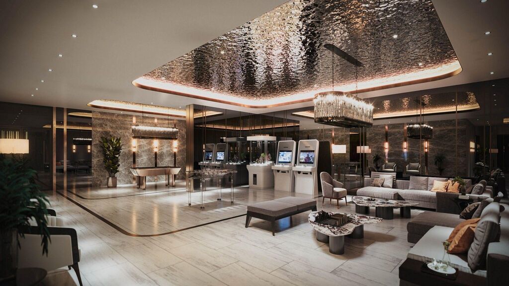 Lobby hotelu prémiové třídy vysoká 9 metrů