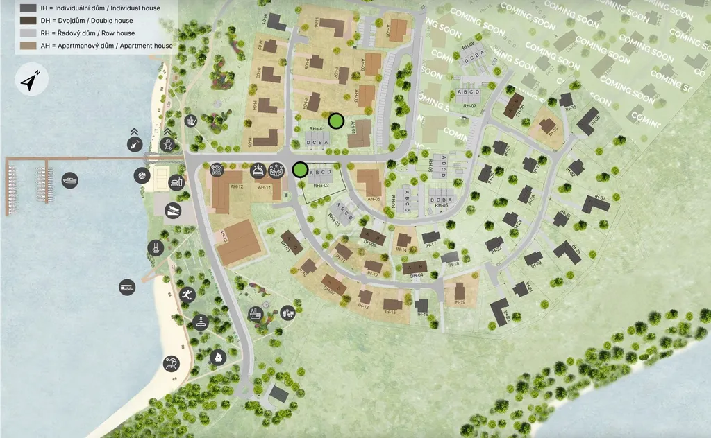 Jedná se o výjimečný a atraktivní resort, který cílí na všechny skupiny a má potenciál být nejlepším místem pro trávení volného času na Lipně. K dispozici bude recepce, beach bar a další služby. V areálu je také písčitá přírodní pláž, přístaviště pro 39 lodí, dětské hřiště a místa pro další aktivity jako pétanque, disk golf aj. Připraven je také rental a facility managment, který se stará o správu a údržbu resortu, odklízení sněhu, sekání trávy aj. Na prodej jsou i další pozemky, apartmány a řadové domy.