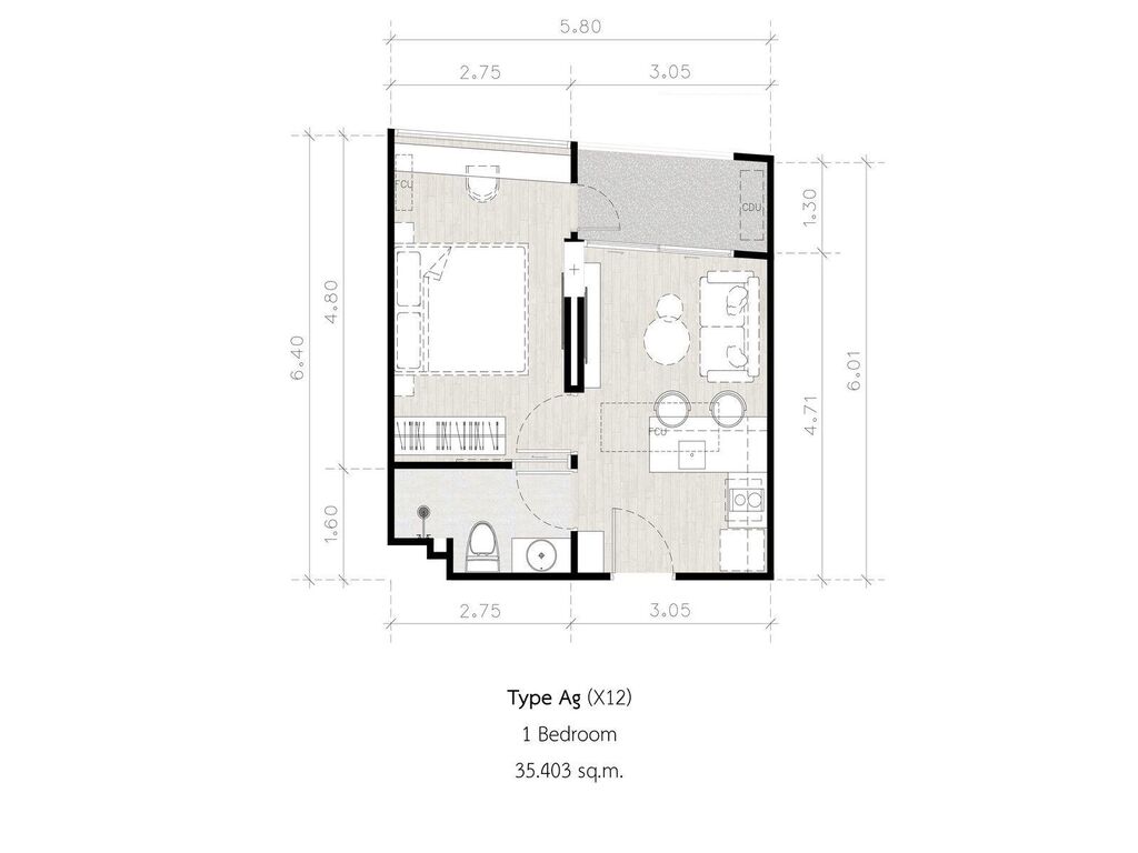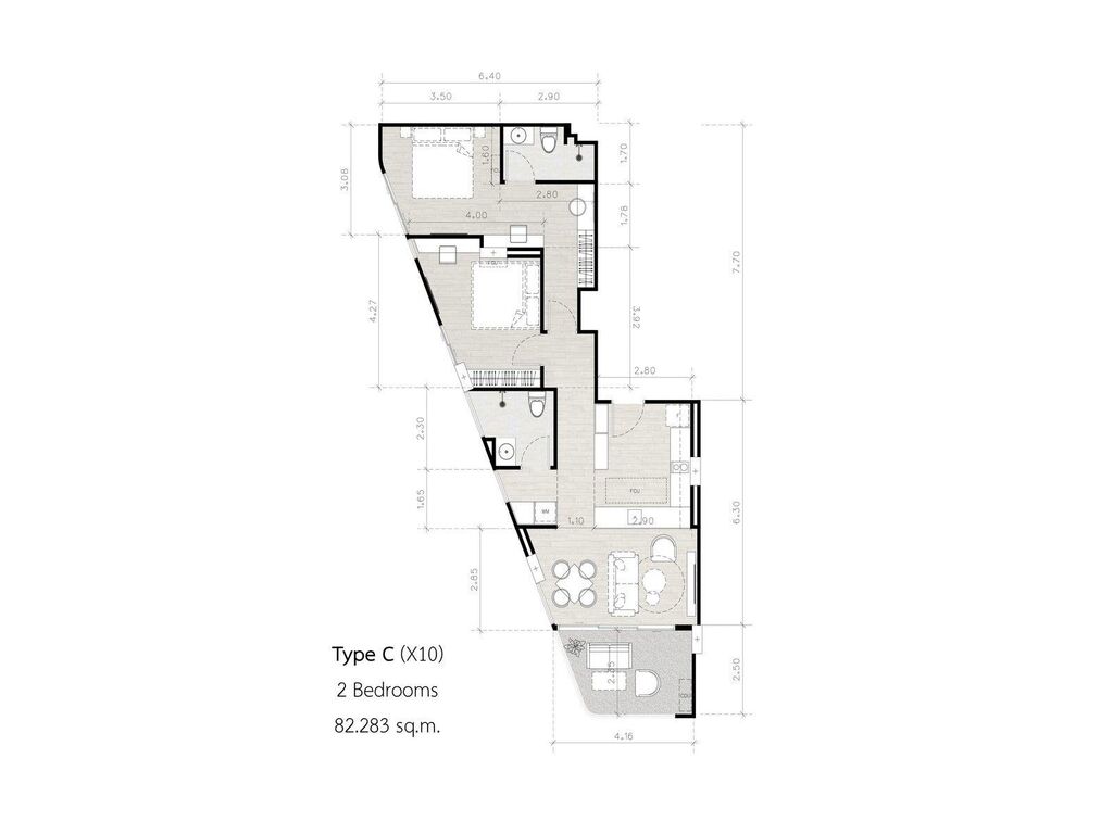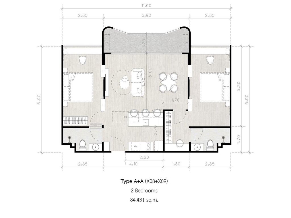 příklad: 2 ložnice (82 m) cca 12 milionů THB (přibližně 320 000 USD)