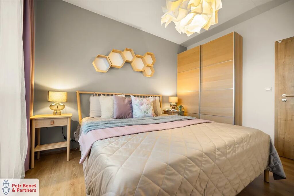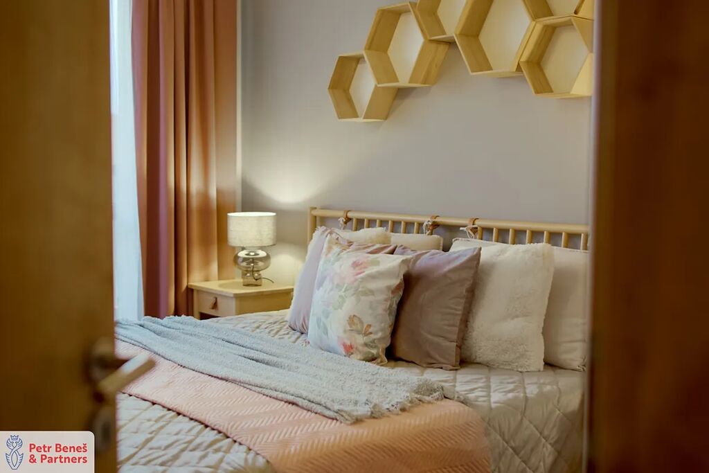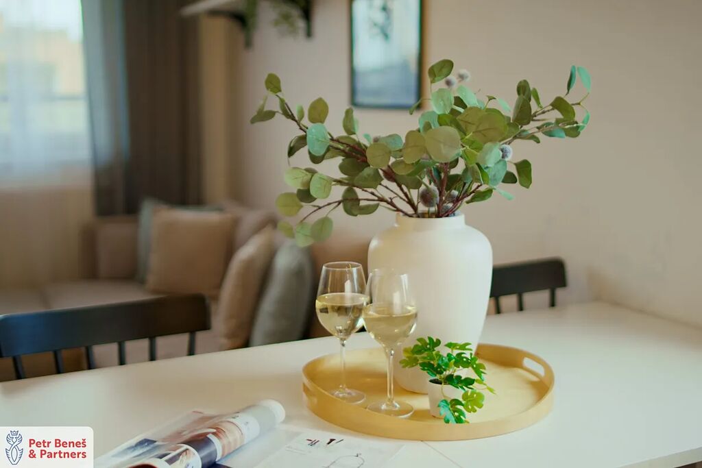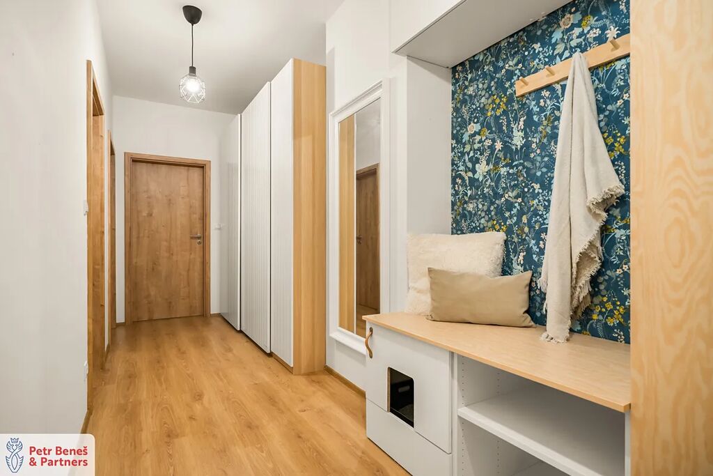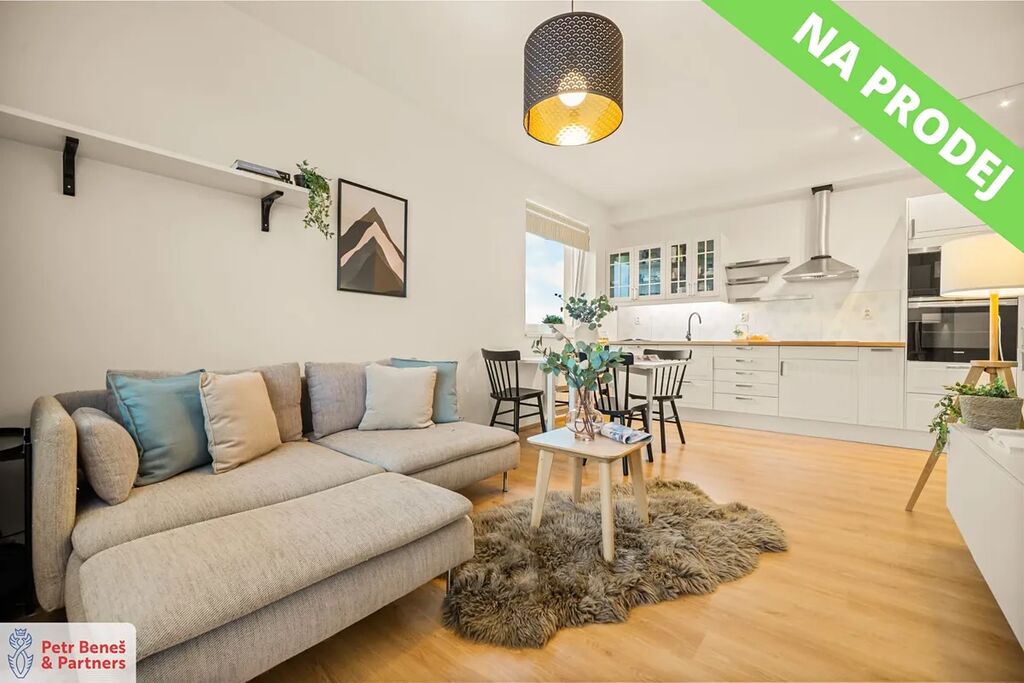 Byt samotný kombinuje moderní dispozici, funkčnost a příjemnou atmosféru. Obývací pokoj s kuchyňským koutem tvoří přirozené srdce domácnosti, dva další pokoje poskytují klid a soukromí.