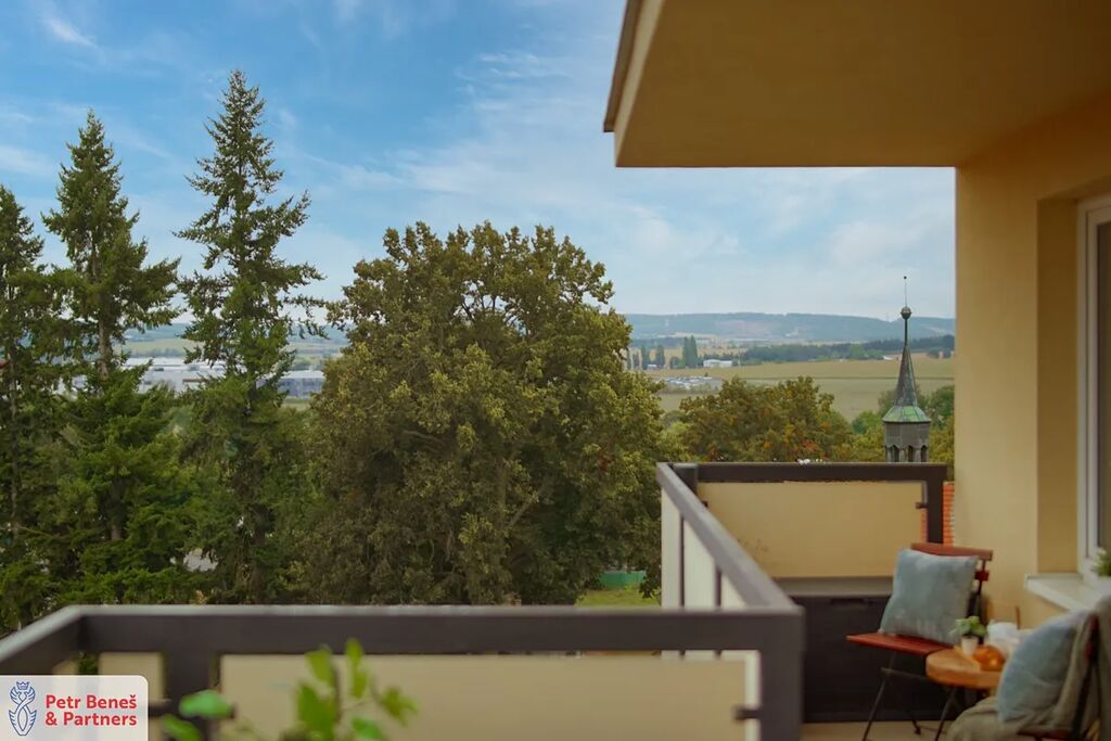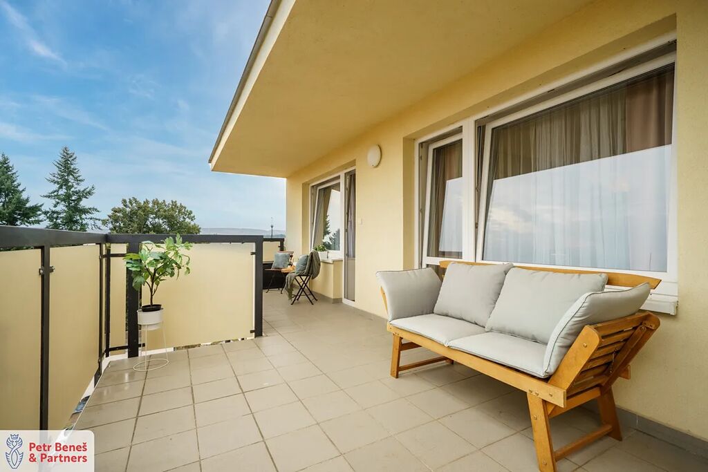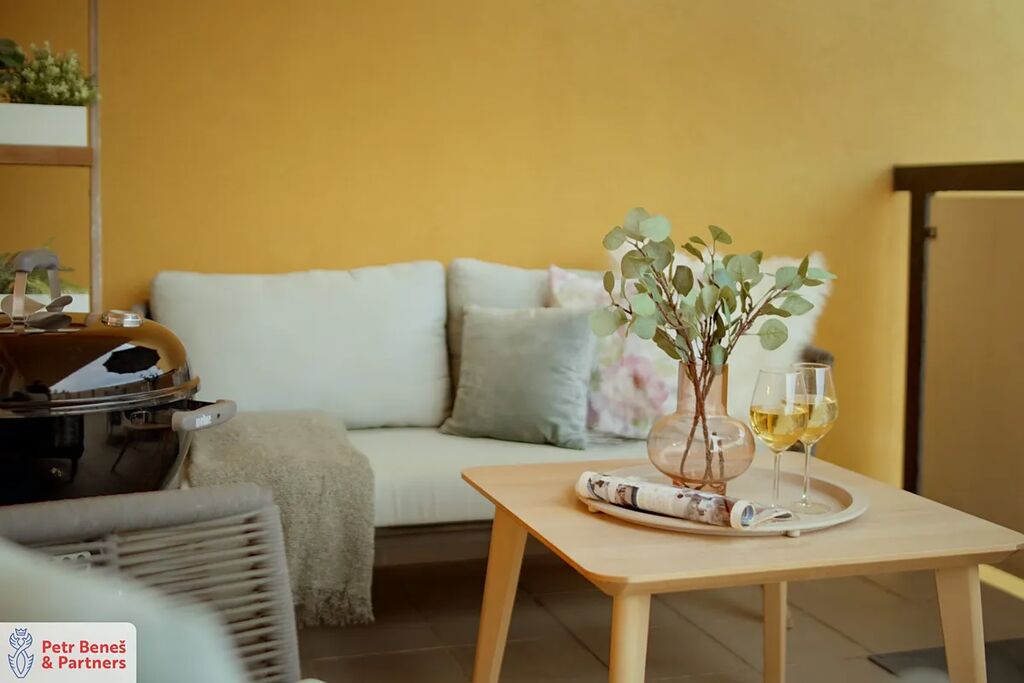 Byt o dispozici 3+kk a ploše 70 m² se nachází v nejvyšším 5. patře s výtahem. Díky tomu je krásně světlý, tichý a nabízí výhled, který vás neomrzí. Dominantou je bezpochyby velkorysá terasa o rozloze 24 m² – místo, kde budete chtít trávit celé léto. Snídaně na slunci, večerní víno – tahle terasa je skutečným rozšířením obývacího prostoru.