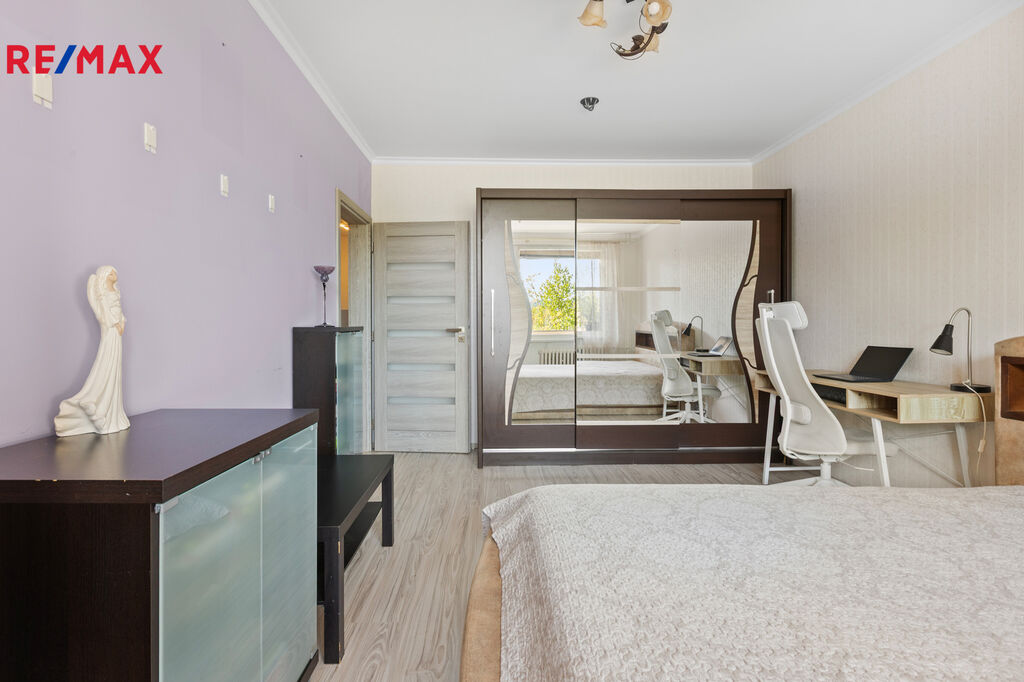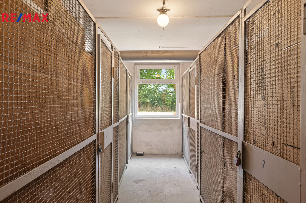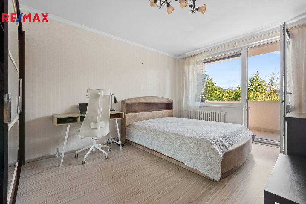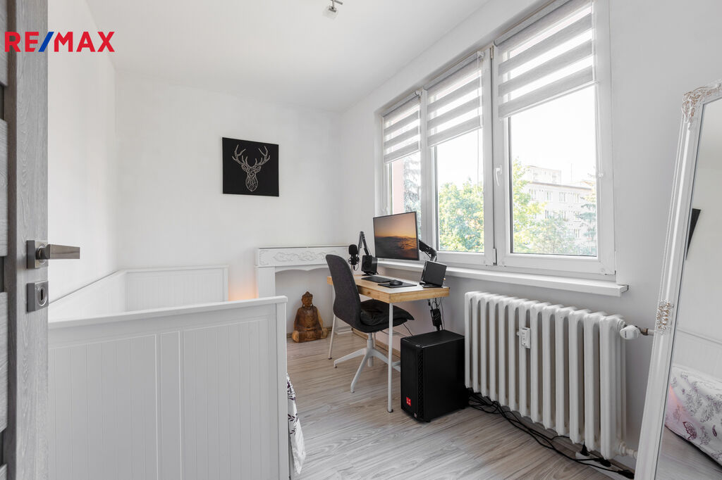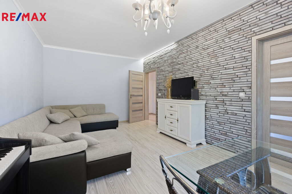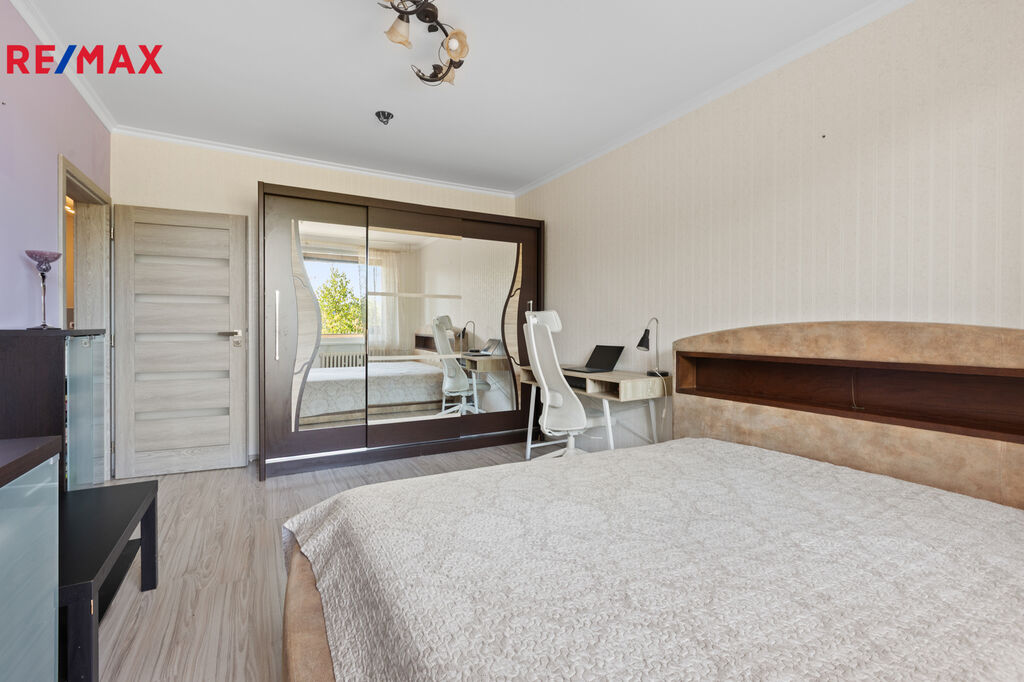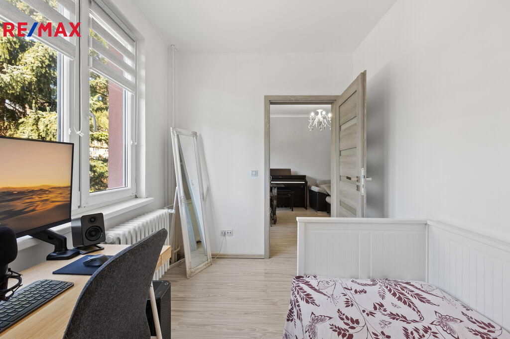 Byt disponuje s prostorným obývacím pokojem, ze kterého se dostanete do menší ložnice nebo dětského pokoje. Ve třetí místnosti, ložnici, se nachází balkón. Předsíň nabízí dostatek úložného prostoru díky vestavěné skříni. Koupelna s vanou a WC. K bytu náleží také sklepní kóje.
