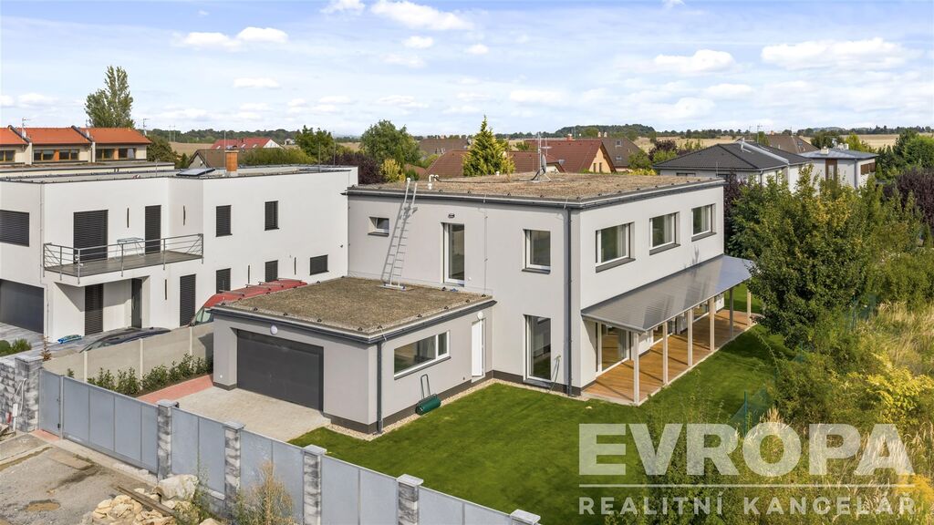 Nabízíme k pronájmu prostorný rodinný dům o velikosti 320 m² na 800 m² oploceném pozemku. Dům je navržen v pasivním standardu (tepelným čerpadlem a rekuperací) a nabízí moderní komfort: dvojgaráž s automatickými vraty, zastřešenou terasu po celé délce domu, zelenou střechu garáže a upravenou zahradu s okrasnými stromy.