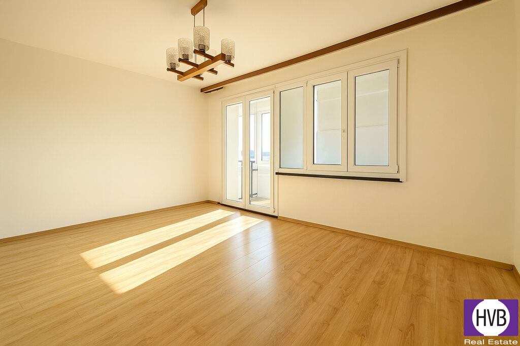 Jednotka se severozápadní orientací a krásnými výhledy do okolí je po částečné rekonstrukci. Dispozice - vstupní chodba, kuchyň s jídelní částí, obývací pokoj s přímým vstupem na lodžii, dvě ložnice, koupelna se sprchovým koutem a samostatná toaleta.