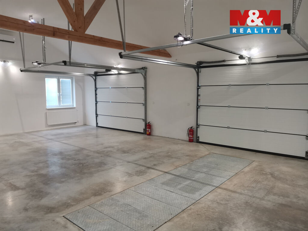 Garáž: plocha 93 m², stání pro 2-3 auta. Bezbariérový přístup. Stodola 192m².Zahradní domek: plocha 39 m².