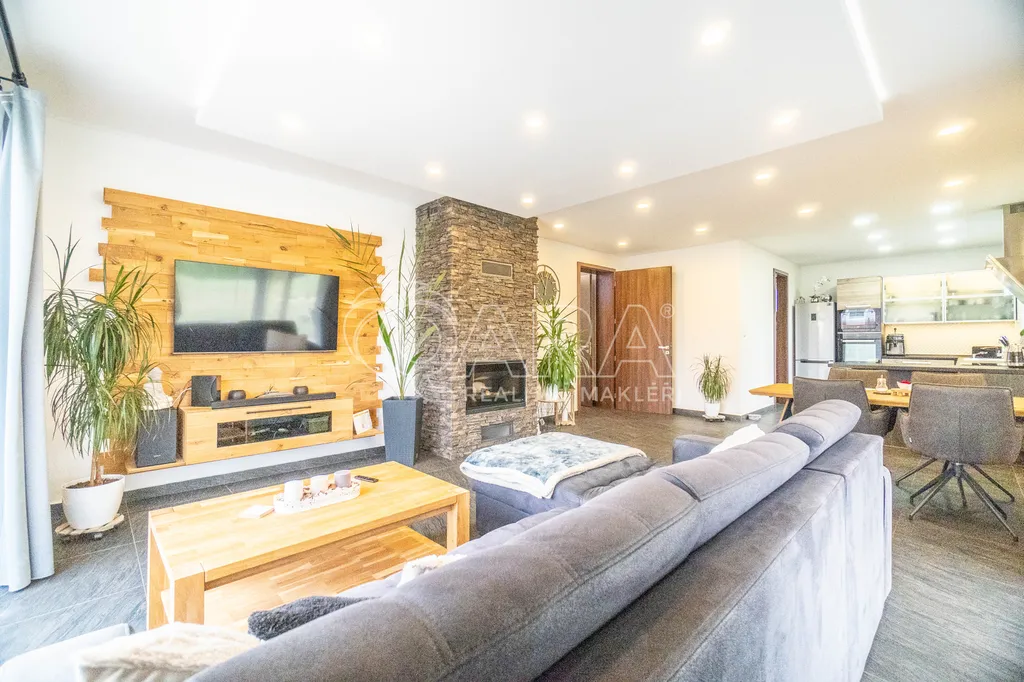 Tento dům vyniká svou velkorysou dispozicí 7+kk, která nabízí dostatek prostoru i soukromí pro každého člena rodiny. Dominantou je prostorný obývací pokoj s kuchyňským koutem, na který navazují další místnosti, a to ložnice, dětský pokoj, 2x pokoj pro hosty, dvě pracovny, šatna, technická místnost, koupelna a samostatné WC. Více naleznete v přiložené 3D prohlídce. Díky nadstandardní výšce dveří působí celý interiér ještě vzdušnějším a elegantnějším dojmem.