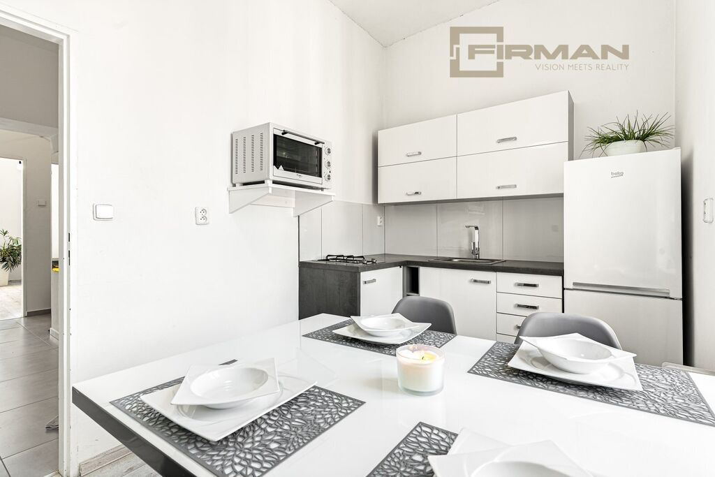 Nové podlahy, moderní kuchyňská linka, svěží koupelna, vyměněné rozvody i interiérové detaily tvoří harmonický celek. Výsledkem je čistý, světlý a útulný prostor, kde se snadno cítíte jako doma. Dispozice je praktická a zároveň příjemně odděluje jednotlivé místnosti: obývací pokoj pro chvíle s rodinou, ložnici nabízející klidné zázemí a kuchyň, kde má každá věc své místo.