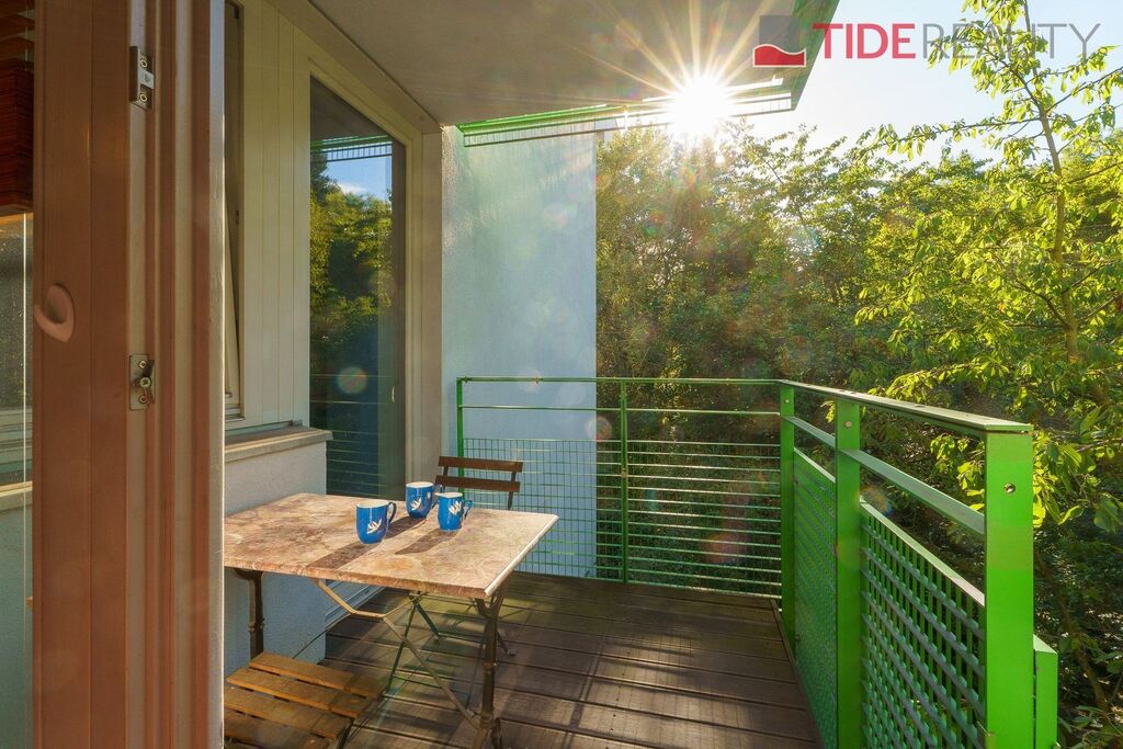 Velice příjemný a tichý byt nacházející se v 3. patře nového domu s výtahem nabízí prostorný obývací pokoj s krbem, plně zařízenou kuchyni, 3 ložnice, pracovnu, šatnu, 2 balkony, 2 koupelny, další samostatnou toaletu a komoru. Vestavěné skříně, dřevěné podlahy, vysoká kvalita provedení. Byt je prakticky plně zařízený. Celková obytná plocha tohoto zařízeného bytu činí 160 m2. Součástí nájmu je sklepní koje a jedno parkovací místo v podzemních garážích. Případné druhé parkovací místo místo je za poplatek. Byt je celý orientovaný do zeleně a nachází se pouze 5 min chůze od stanice metra Anděl. Nájemné 55.500 + 9.000 zálohy na služby a energie. Volný ihned.