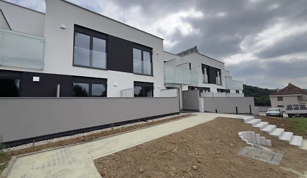 Dispozice: chodba 5,12 m2, obývací pokoj s kuchyňským koutem 24,95 m2, pokoj 13,64 m2, šatna 3,47 m2, koupelna vč. WC 3,90 m2, terasy 16,61 m2, sklep 4,15 m2.