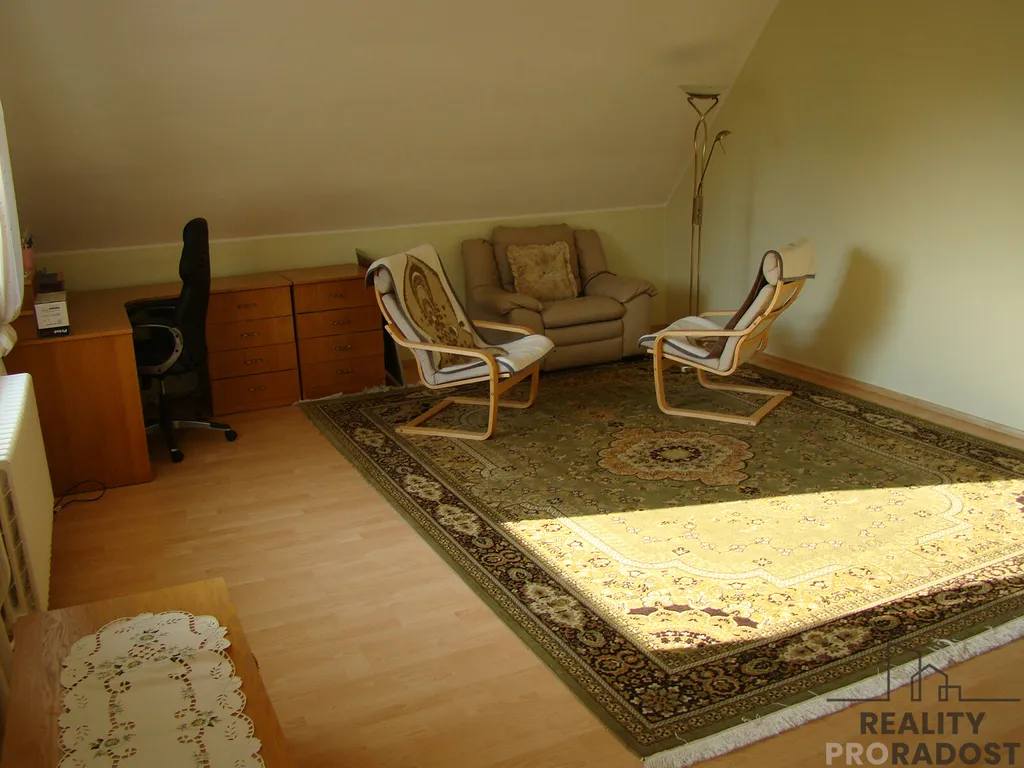 Pronájem prostorného nízkonákladového rodinného domu 4+1, cca 200m2 s terasou 26m, zahradou 700m2, saunou, vířivkou a dvougaráží v klidné lokalitě městys Křivoklát s výhledem na hrad. Dům je plně vybavený: 2x prostorná obývací místnost s krbem, kuchyň-kuchyňská linka, myčka, lednice, trouba, jídelna, 2.pokoje . Ložnice-postel dvoulůžko. V pokojích skříně. 3x koupelna-rohová vana, 2x sprchový kout v každém patře. V přízemí garáž na dvě auta technická místnost topení tepelným čerpadlem, sklep. Udržovaná zahrada 700m2, s posezením v podloubí nebo v altánku Nájemné ve výši 40.000,-Kč, voda ze studny(kojenecká) poplatky celkem 5.000,-Kč měsíčně včetně elektřiny. Vratná kauce 50. 000,-Kč, +provize Zprostředkovateli