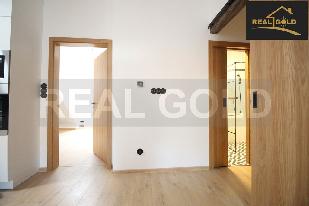 Součástí bytu je kuchyňská linka se sklokeramickou varnou deskou, elektrickou troubou, mikrovlnou troubou, digestoří, vestavnou lednicí s mrazákem, sanitární zařízení koupelny (sprchový kout, umyvadlo se skříňkou, prostor na pračku, kondenzační plynový kotel na ohřev vody a WC. V celém bytě je podlahové vytápění. Prostor na myčku je nachystán v jedné ze spodních skříněk kuchyňské linky (odpad a přívod vody) a je možné si ji na vlastní náklady nájemníka nechat dodat a zapojit. Možnost využití části sklepa - společný pro všechny byty. Volné ihned, prohlídky možné po domluvě.