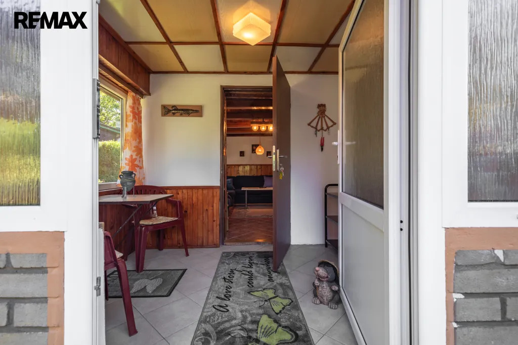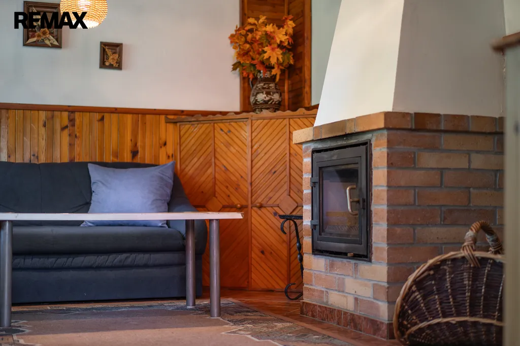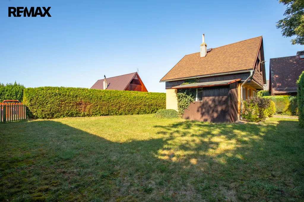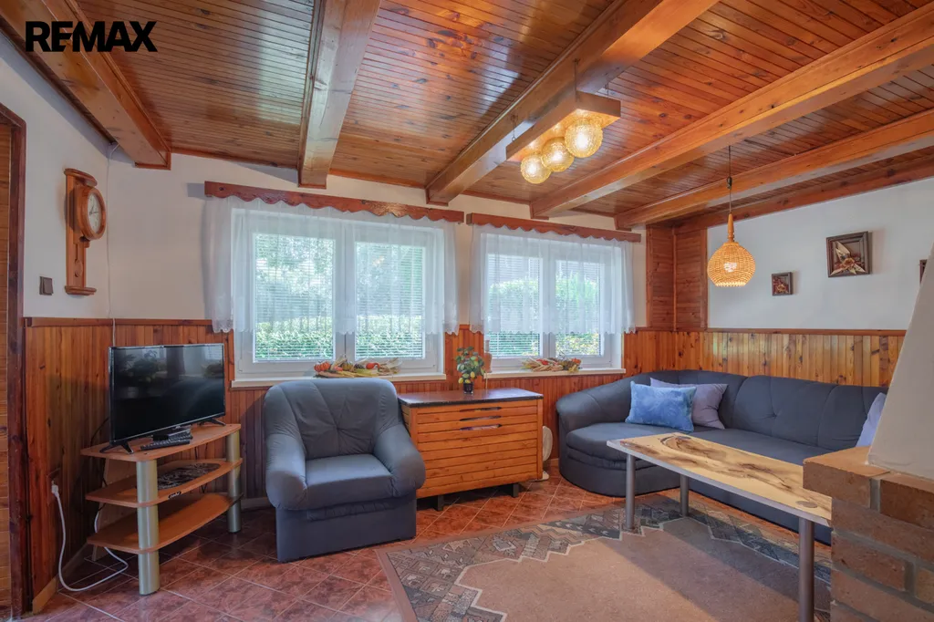Chata byla postavena koncem 80. let a současní majitelé ji vlastní od roku 99. Je cihlová, přízemní s obytným podkrovím a částečně podsklepená. V přízemí vás přivítá chodba s posezením, prostorná koupelna se sprchovým koutem, toaletou, bojlerem a přípojkou na pračku. Hlavním srdcem chaty je útulný obývací pokoj s krbem, který dokáže vykouzlit nezaměnitelnou atmosféru a teplo domova. Vedlejší kuchyně s linkou do L prošla rekonstrukcí v roce 2018 a je praktickým zázemím pro rodinné vaření.