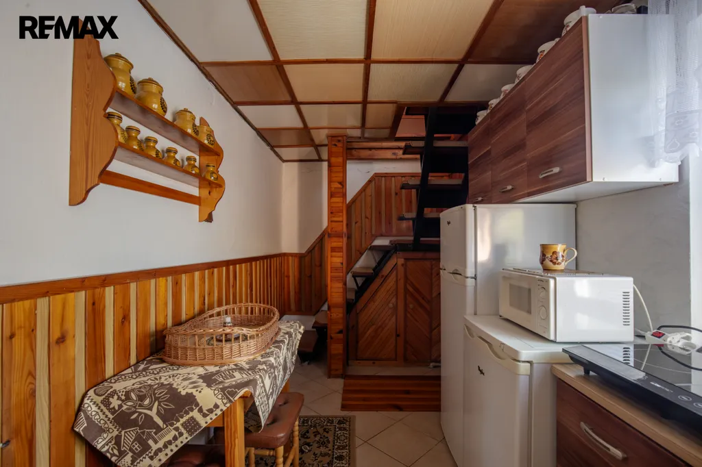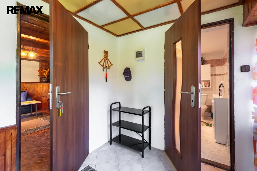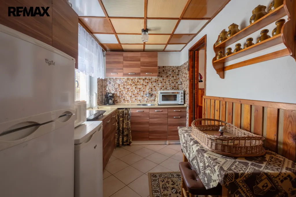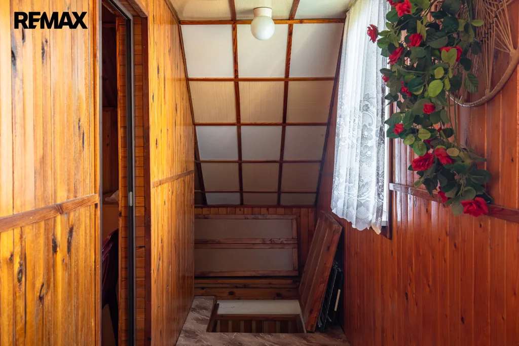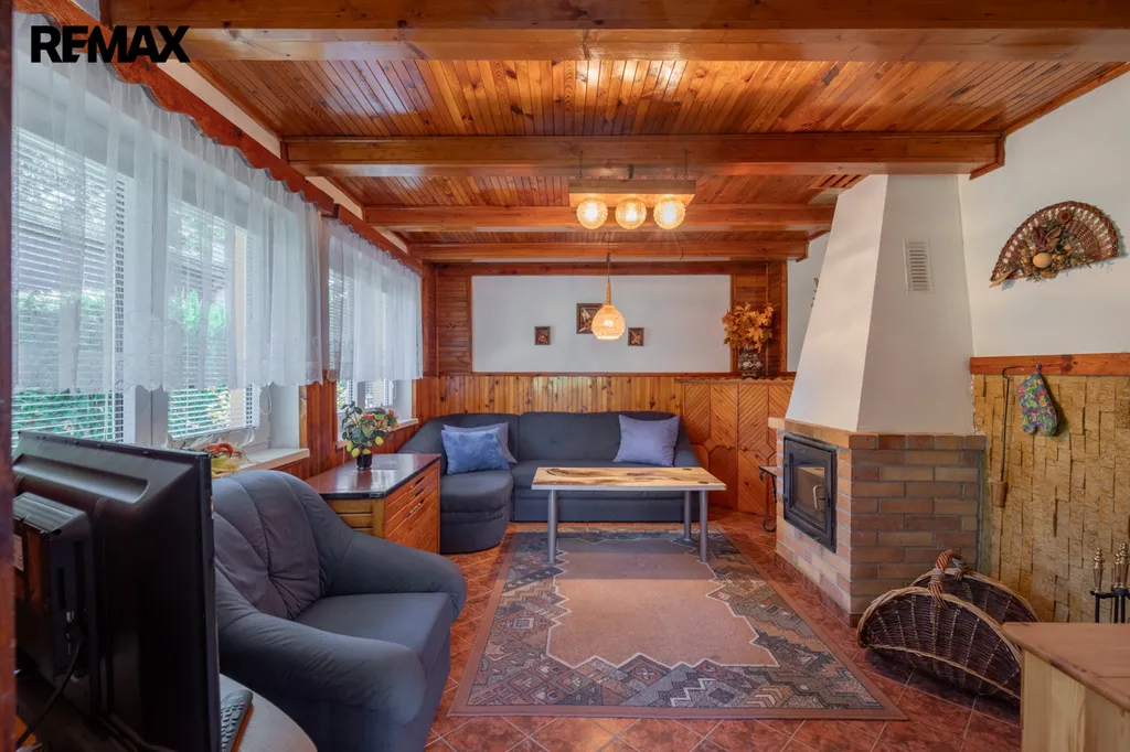 Chata byla postavena koncem 80. let a současní majitelé ji vlastní od roku 99. Je cihlová, přízemní s obytným podkrovím a částečně podsklepená. V přízemí vás přivítá chodba s posezením, prostorná koupelna se sprchovým koutem, toaletou, bojlerem a přípojkou na pračku. Hlavním srdcem chaty je útulný obývací pokoj s krbem, který dokáže vykouzlit nezaměnitelnou atmosféru a teplo domova. Vedlejší kuchyně s linkou do L prošla rekonstrukcí v roce 2018 a je praktickým zázemím pro rodinné vaření.