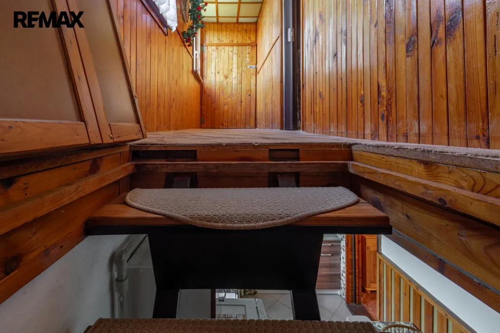 Z kuchyně vedou schody do podkroví, které slouží jako noční část. Najdete zde dvě ložnice a balkon orientovaný na východ s výhledem na řeku. Z balkonu je možné sledovat východy slunce, poslouchat zurčení vody a užívat si chvíle klidu. Chodba v podkroví je důmyslně řešená s úložnými prostory.