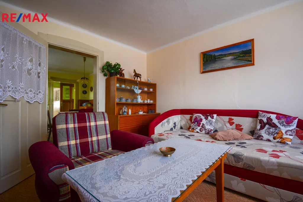 Ze vstupní chodby je přístupná koupelna se sprchovým koutem a WC, kde je umístěný i plynový kotel. Vpravo najdete ložnici, vlevo kuchyň s kuchyňskou linkou a jídelním stolem, která je průchozí do obývacího pokoje. Dům je v udržovaném, spíše původním stavu. Vybaven je plastovými okny a vytápění zajišťuje plynový kotel s rozvodem do radiátorů.