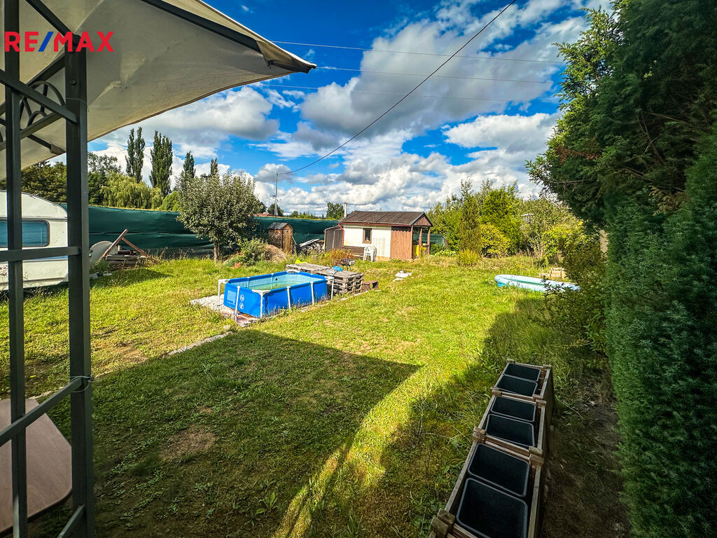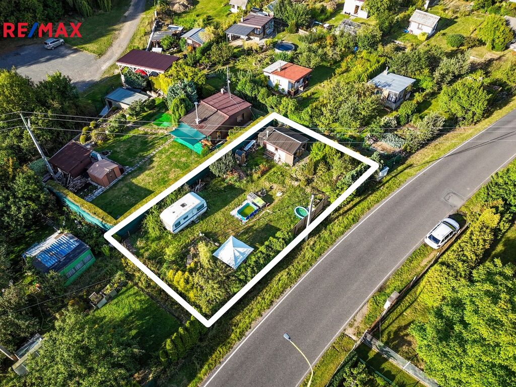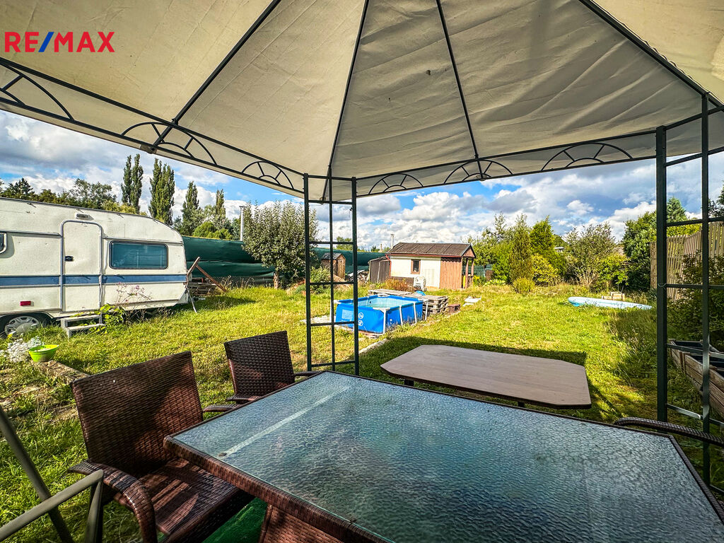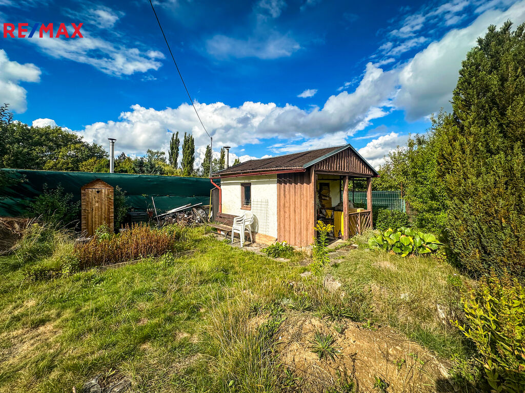 Součástí pozemku je zděná zahradní chata o zastavěné ploše 16 m², která v současnosti slouží jako sklad nářadí a místo k odpočinku. Chata je částečně podsklepená a nabízí možnost přestavby pro celoroční využívání.