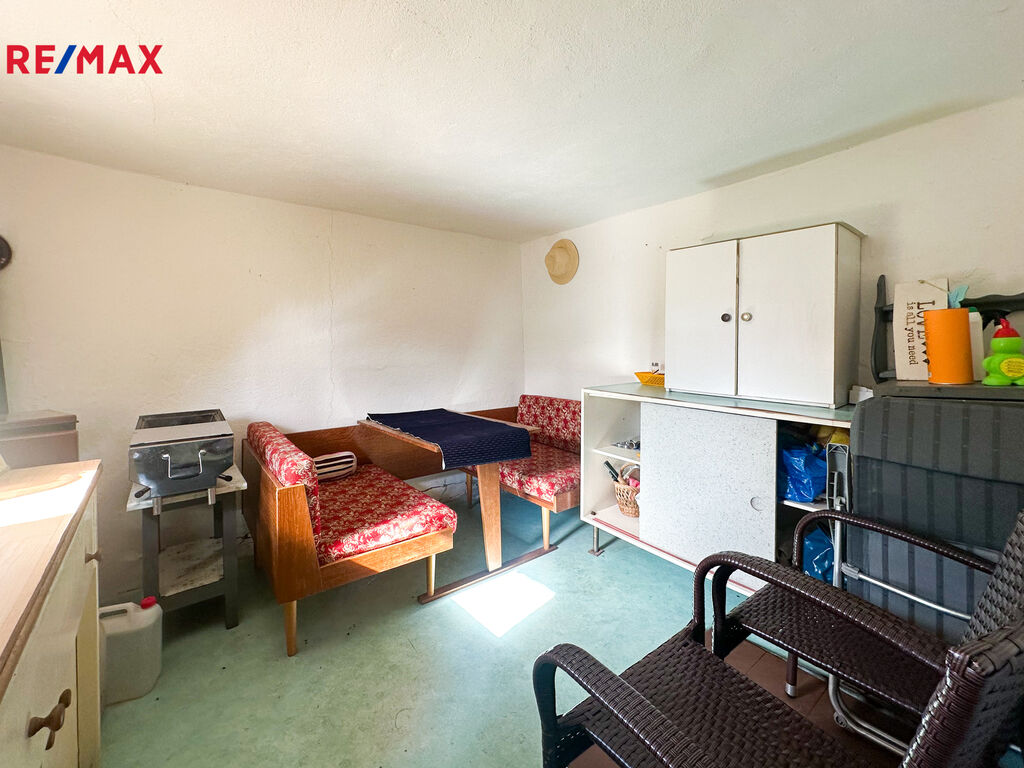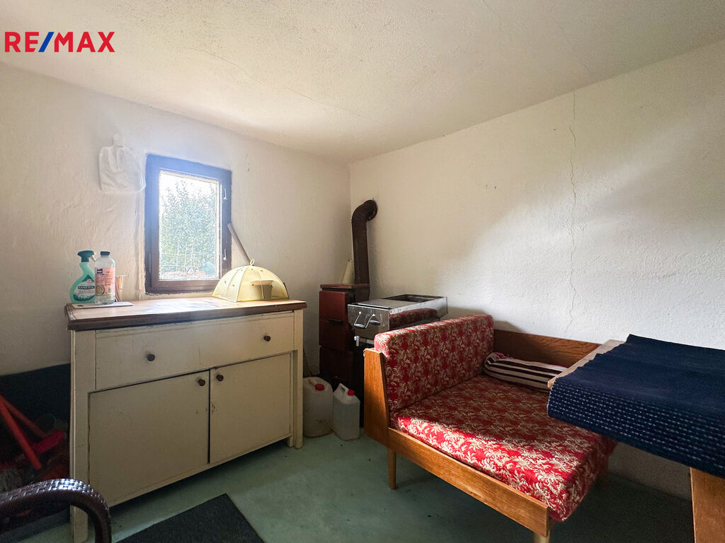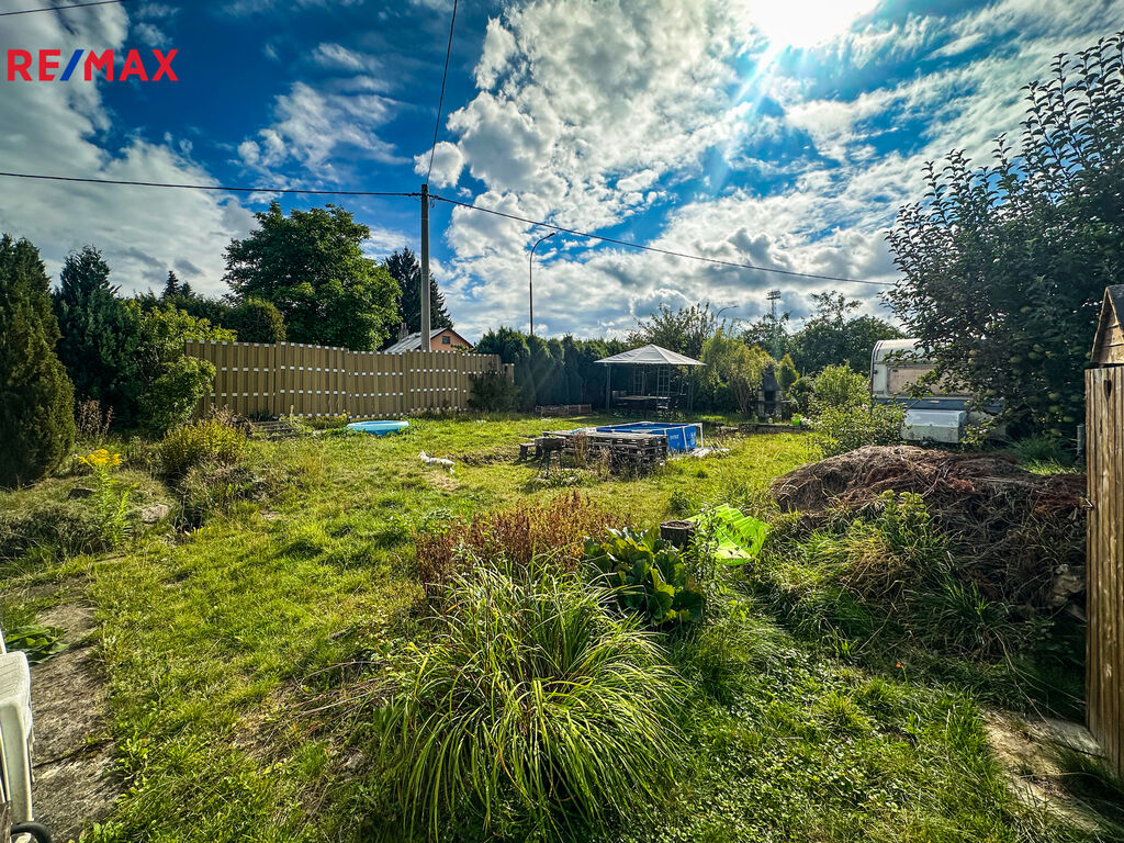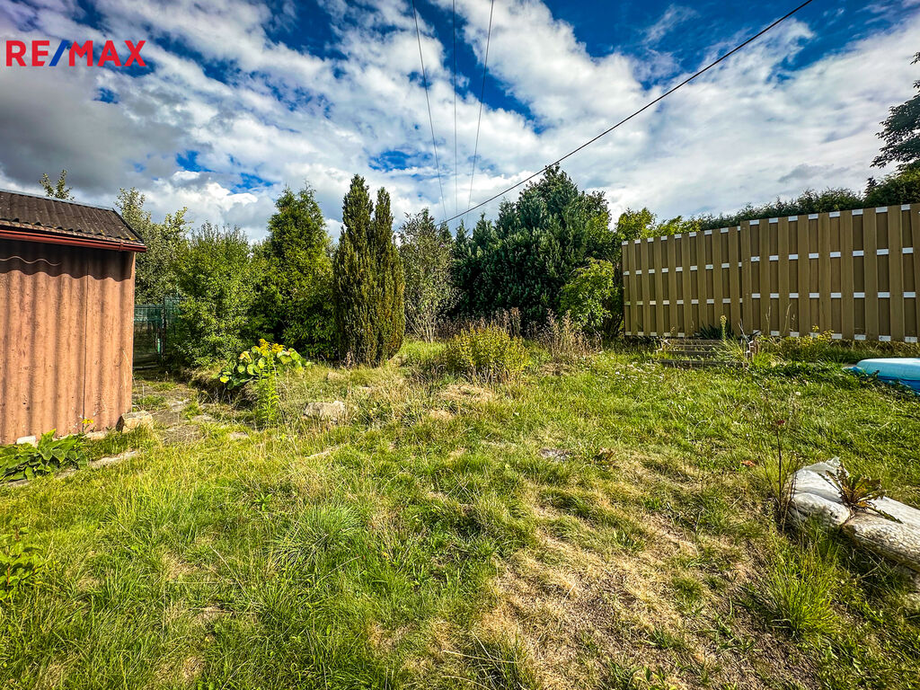 Součástí pozemku je zděná zahradní chata o zastavěné ploše 16 m², která v současnosti slouží jako sklad nářadí a místo k odpočinku. Chata je částečně podsklepená a nabízí možnost přestavby pro celoroční využívání.
