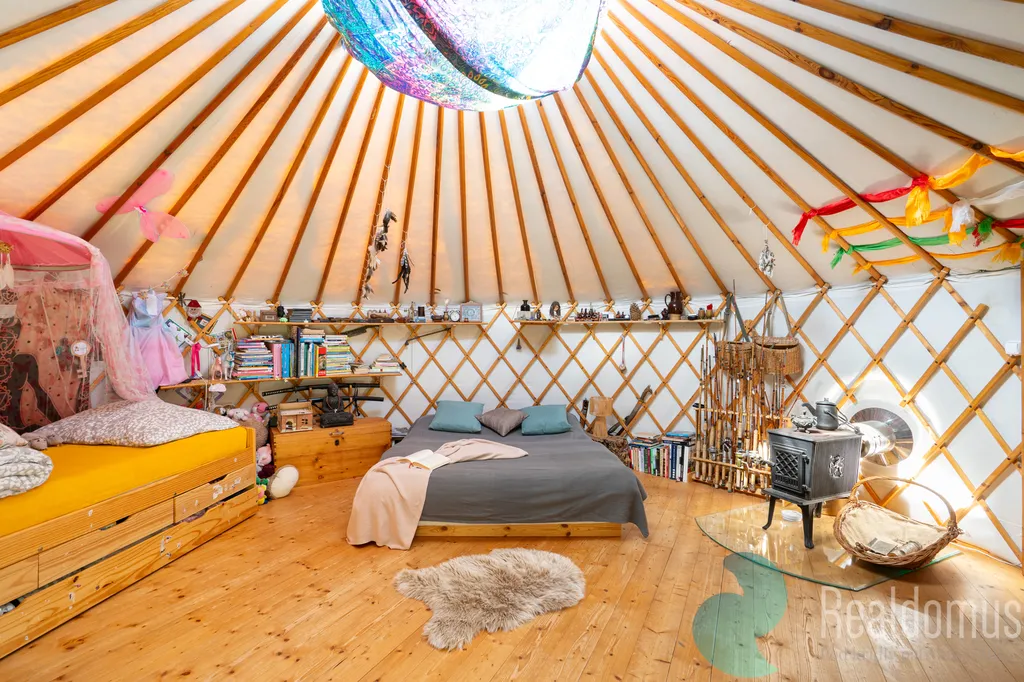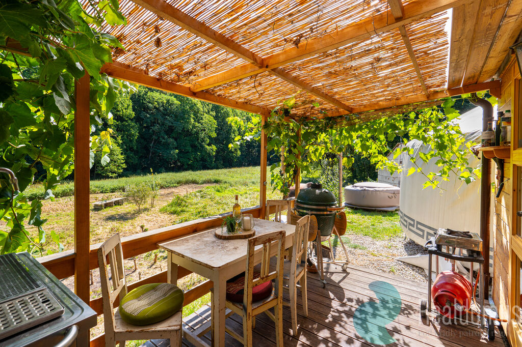 Vedle stodoly stojí jurta, útulný domov s teráskou a výhledem do údolí, kde je naplánovaný rybník. U jurty vás čeká sauna a vířivka, kde po práci na vinohradu najdete zasloužený odpočinek. Včelín, skleník a fóliovník přidávají další vrstvu příběhu – tady se totiž nejen pěstuje víno, ale žije v souladu s přírodou.
