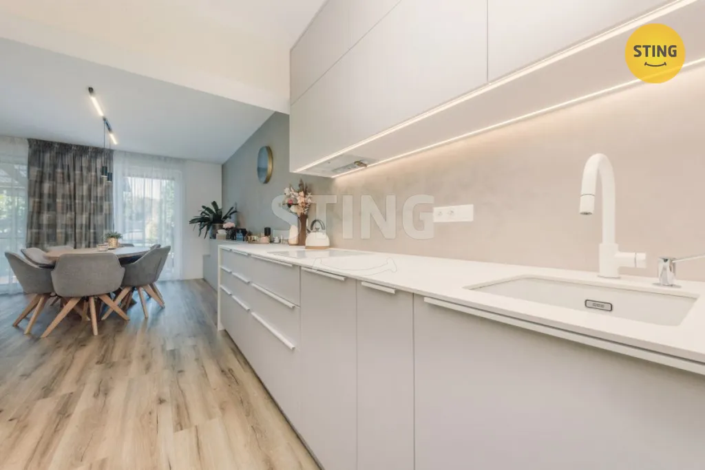 Nabízíme k prodeji velmi pěkný řadový dům v Mikulovicích nedaleko Pardubic o zastavěné ploše 76 m2. Tento dům prošel v roce 2023 zdařilou rekonstrukcí (obývací pokoj, kuchyňská linka na míru včetně spotřebičů, chodba, podlahové krytiny, podlahové vytápění, designové stěrky). Dispozice domu: v 1. NP je zádveří, chodba, koupelna (sprchový kout), komora, obývací pokoj s kuchyňským koutem. Z obývacího pokoje je možnost vstupu na zahradu. Na zahradu je možnost přístupu i ze zadní části pozemku. Ve 2. NP se nachází koupelna (vana) a 3 samostatné pokoje. V podkroví je vybudovaná prostorná pracovna. Dále je dům vybaven, klimatizací TOSHIBA, fotovoltaickou elektrárnou (instalace 2024) a wallboxem na nabíjení elektromobilu. Celková rozloha pozemku, na kterém je vrtaná studna (napojen závlahový systém) a krytý bazén se slanou vodou činí 336 m2. Kryté parkování pro 2 auta je možné před domem. Případně lze směnit za byt s doplatkem. V nedalekých Pardubicích je veškerá občanská vybavenost (školky, školy, obchody, MHD, atd. Pro další informace či sjednání prohlídky kontaktujte makléře. Do konce února 2026 nabízíme prostřednictvím našeho partnera úrokové sazby od 4,29 % p.a. Více informací Vám sdělí náš specialista na prohlídce.