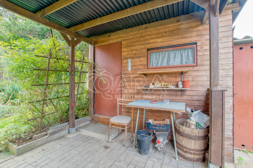 Na zahradě o rozloze 610 m² se nachází vzrostlé stromy a keře, které zajišťují soukromí, a také několik borůvkových keříků. Součástí je i průchozí altánek, který poslouží nejen jako úložný prostor, ale především jako příjemné místo pro letní posezení a grilování.