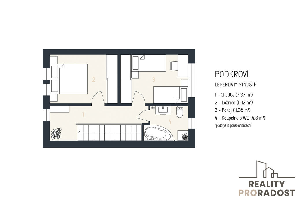 •	dvě klidné ložnice s dostatkem přirozeného světla