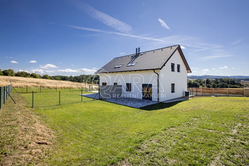 Dům je francouzským oknem v obývacím pokoji přirozeně propojen se zahradou o velikosti 348 m², jejíž součástí je na dům navazující 28 m² vydlážděná terasa, díky jejíž severní orientaci si můžete venkovní prostor užít i v horké a slunné dny. Zahrada je kompletně oplocená, zatravněná a čeká na případné finální úpravy od nových majitelů. Akumulační nádrž (3 m3) pro budoucí hospodaření s dešťovou vodou je již na pozemku umístěna.
