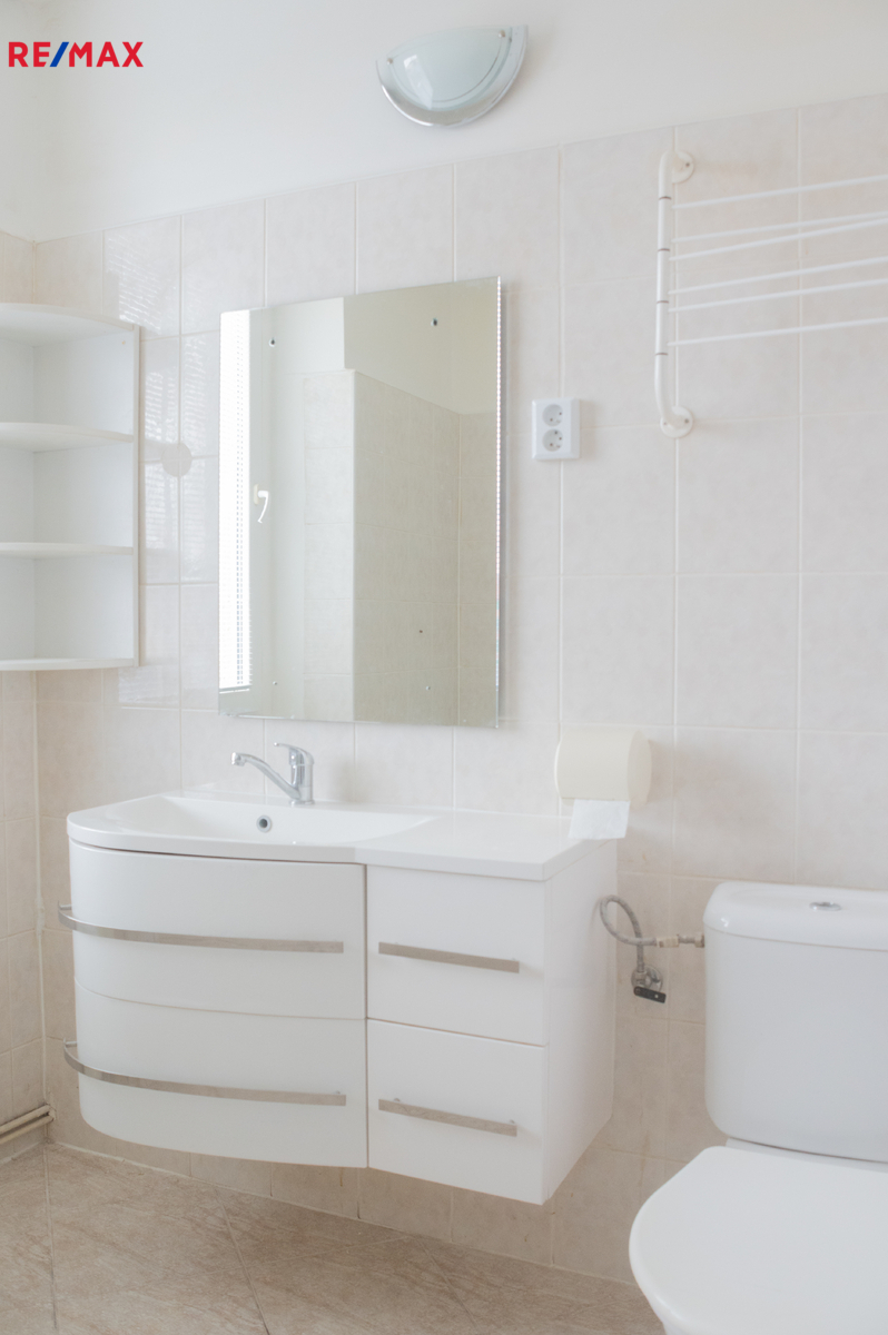 Byt je ve dobrém stavu a pronajímá se částečně vybavený – k dispozici je kuchyňská linka, lednice, elektrický bojler, pračka a základní nábytek.